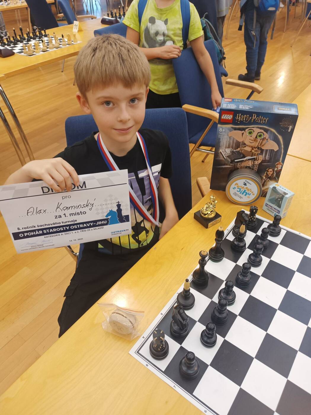 Naše škola měla své želízko v ohni – Alex z 2.A zasadil svým soupeřům šach-mat a v kategorii 1. a 2. tříd vybojoval úžasné 1. místo!
