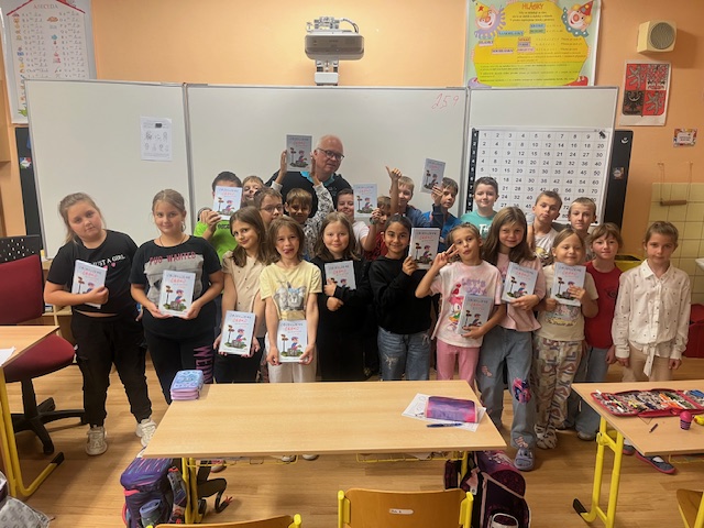Žáci se setkali se spisovatelem Arny Šrámkem, který jim představil svoji knihu a povykládal jim o tom, jak vznikla.
