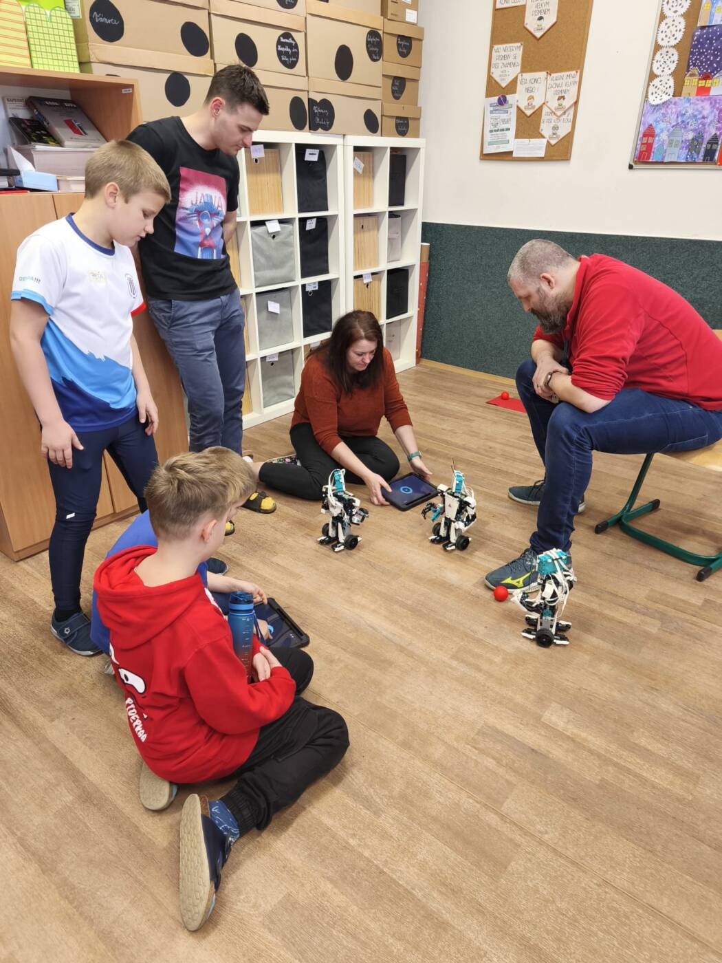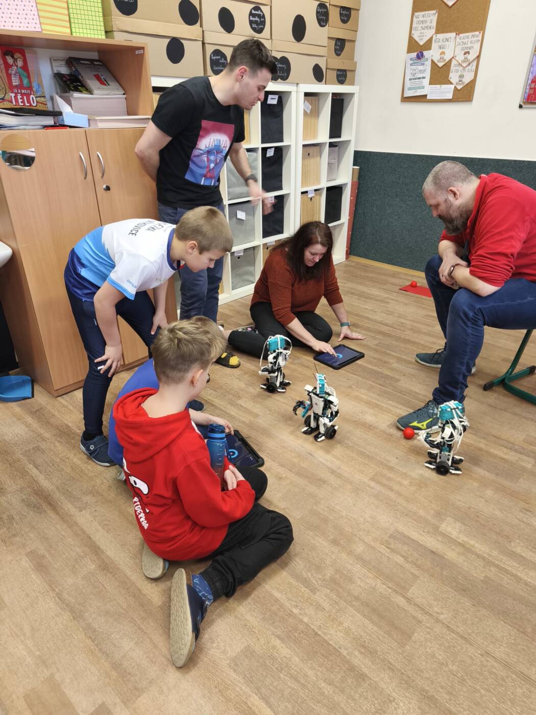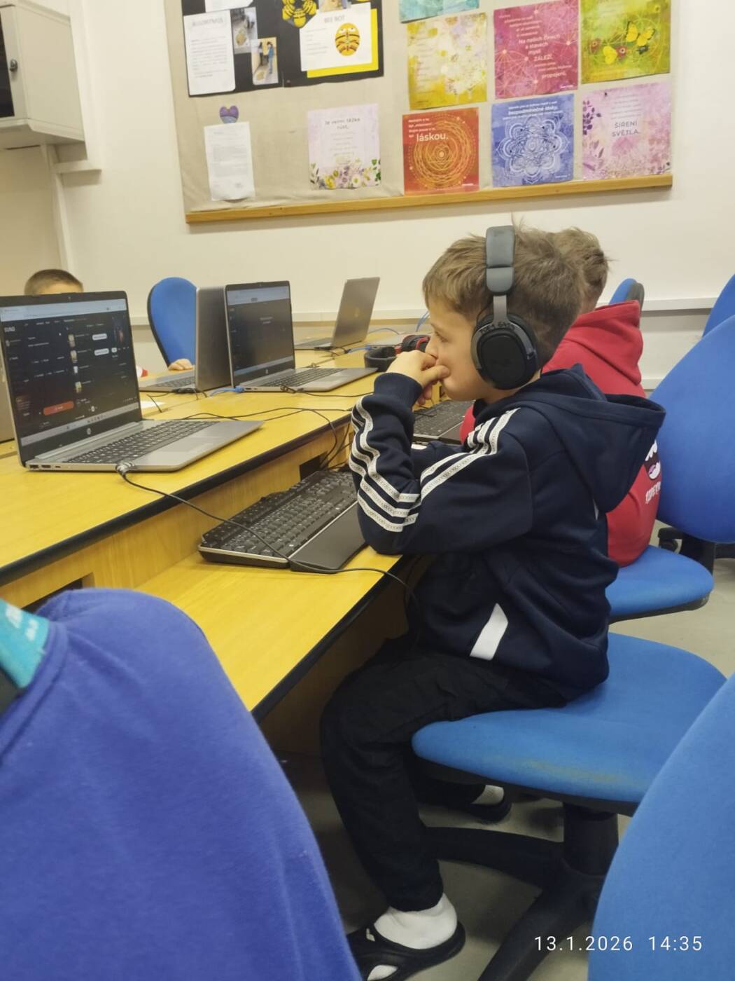 Další setkání Klubu Koumák se neslo ve znamení technologií a logického myšlení. Nadaní žáci postupně procházeli stanoviště a plnili zadané úkoly s pomocí digitálních technologií. Vyzkoušeli si práci s roboty, kteří vypadali jako včely. Bylo potřeba jim správně naplánovat trasu, aby trefili do úlu. Nechyběly ani úkoly zaměřené na logiku a přesnost. Součástí setkání byly také moderní nástroje umělé inteligence. AI se stala pomocníkem při řešení úkolů, tvorbě textů, a dokonce i při skládání vlastní „koumácké“ hymny. Děti pracovaly s tablety a digitálními aplikacemi. Zkoušely různé postupy, ladily detaily a zjišťovaly, že technologie nejsou jen o hotových odpovědích, ale hlavně o přemýšlení a hledání cest. Stanoviště byla připravena tak, aby podporovala samostatnost, kreativitu a schopnost uvažovat v souvislostech. Právě tady vznikaly typické „aha momenty“, které ke Klubu Koumák neodmyslitelně patří.