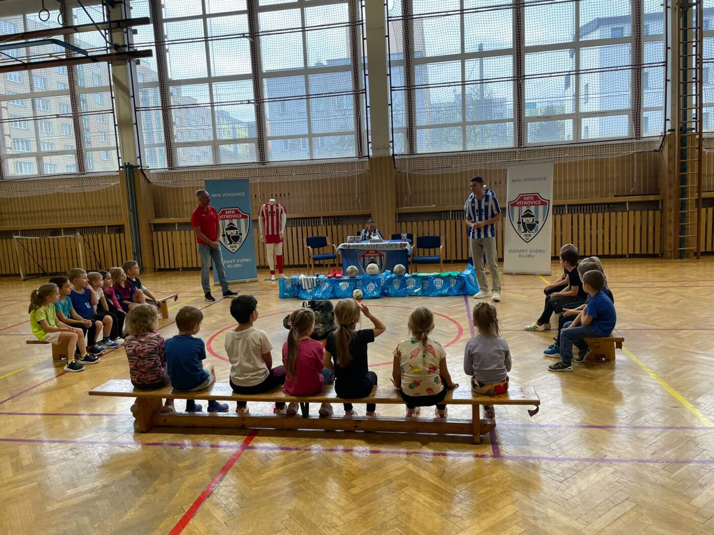 Do tělocvičny ZŠ Horymírova přišel trenér a hráči MFK Vítkovice. S dětmi si povídali o fotbale, o důležitosti pravidelného pohybu i o fair play – tedy o tom, proč je důležité hrát čestně, dodržovat pravidla a respektovat ostatní.