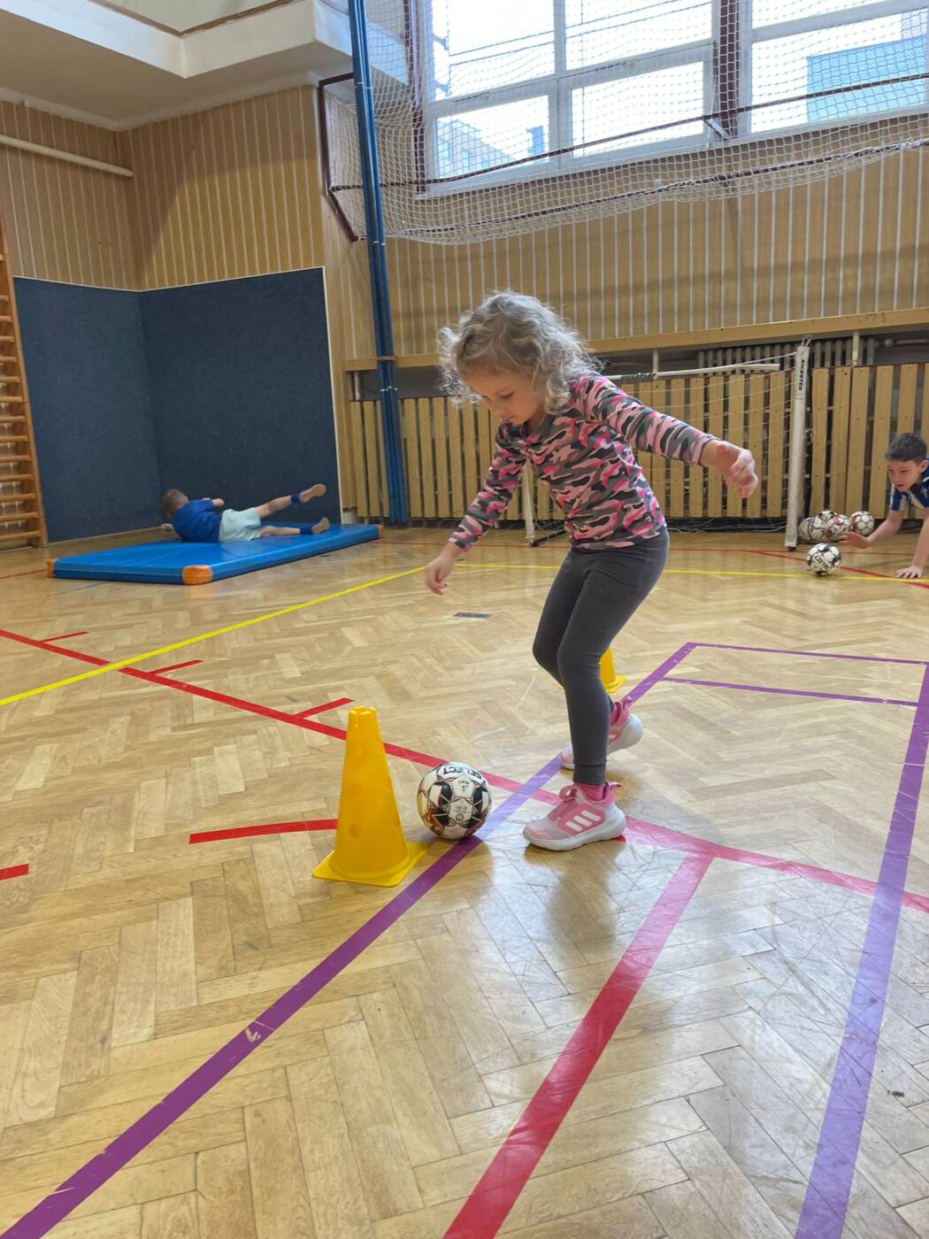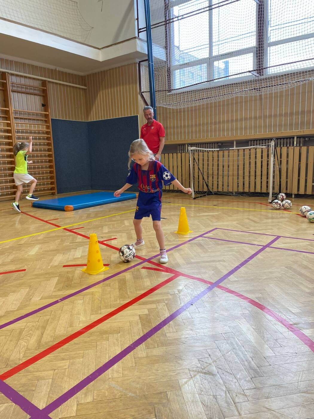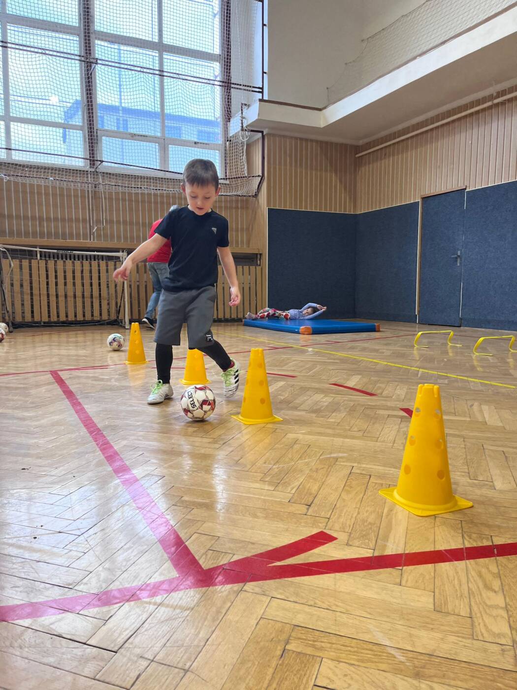 Po krátké besedě následovaly pohybové hry a jednoduchá fotbalová cvičení. Děti si vyzkoušely vedení míče, přihrávky i střelbu. Nakonec jsme si společně zahráli malý zápas, ve kterém děti ukázaly nadšení, energii i týmového ducha.