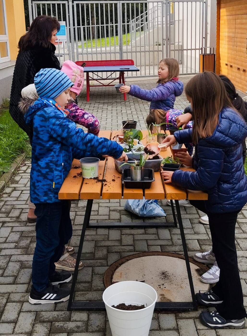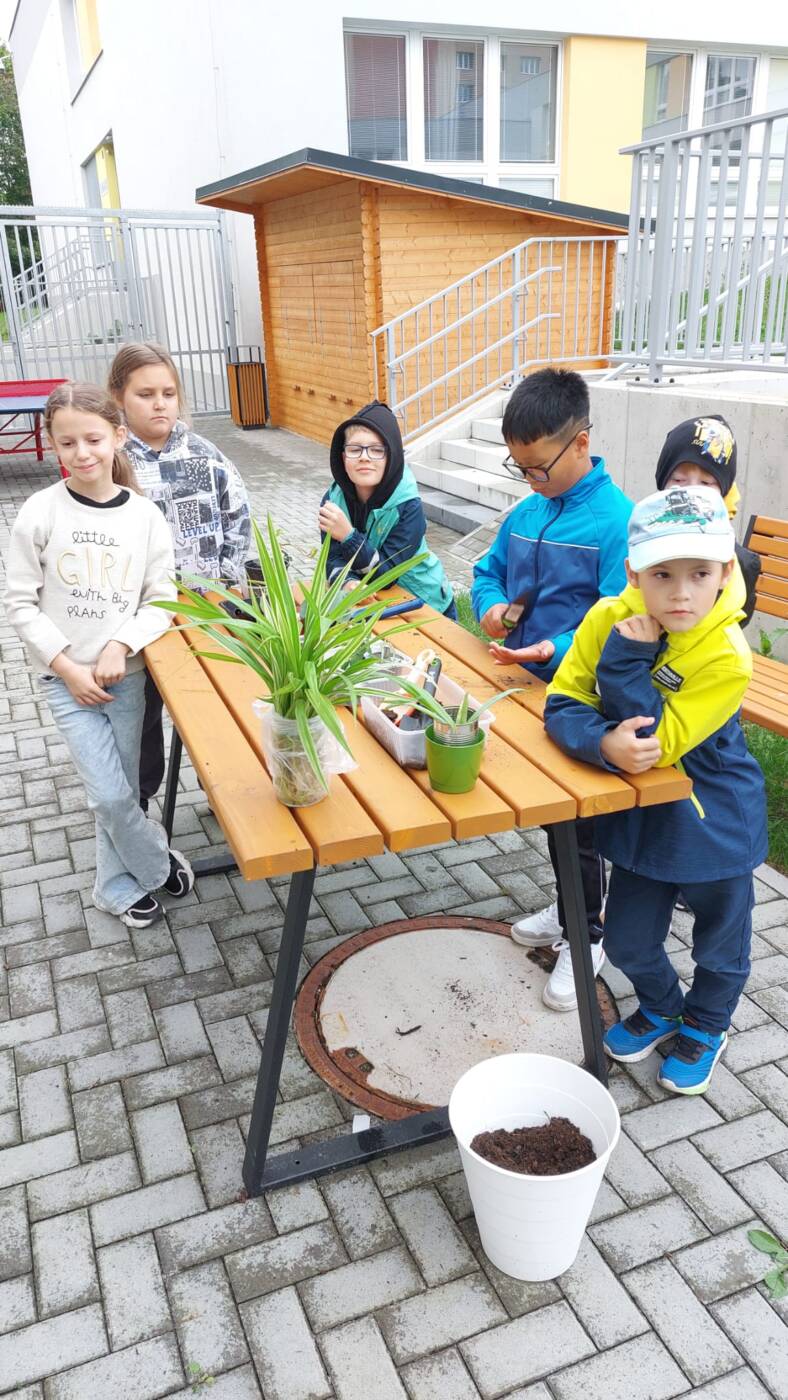 Děti z družiny navštívily knihovnu, kde si společně zasadily malé rostlinky a vytvořily tak svůj zelený koutek.
