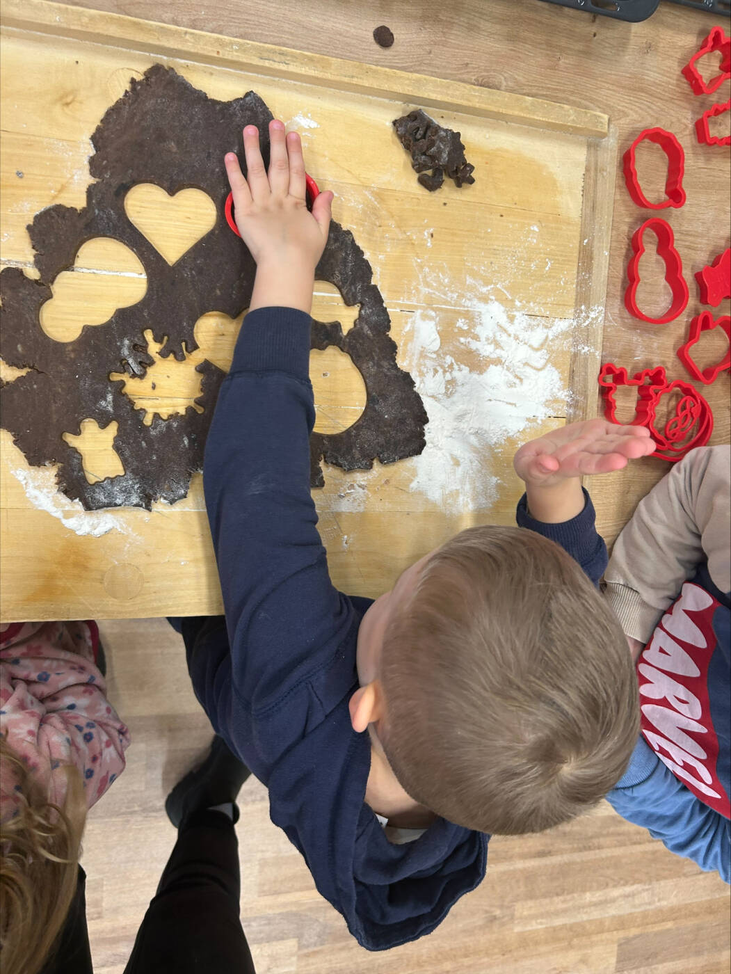 Děti se vydaly za vánočním pečením do kuchyně v ZŠ Horymírova. Samy vyválely těsto, s nadšením vykrajovaly různé tvary a poté sledovaly, jak se perníčky pečou v troubě. Celá kuchyně voněla blížícími se Vánocemi.