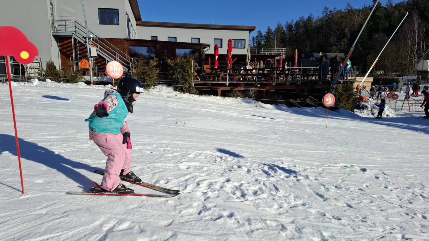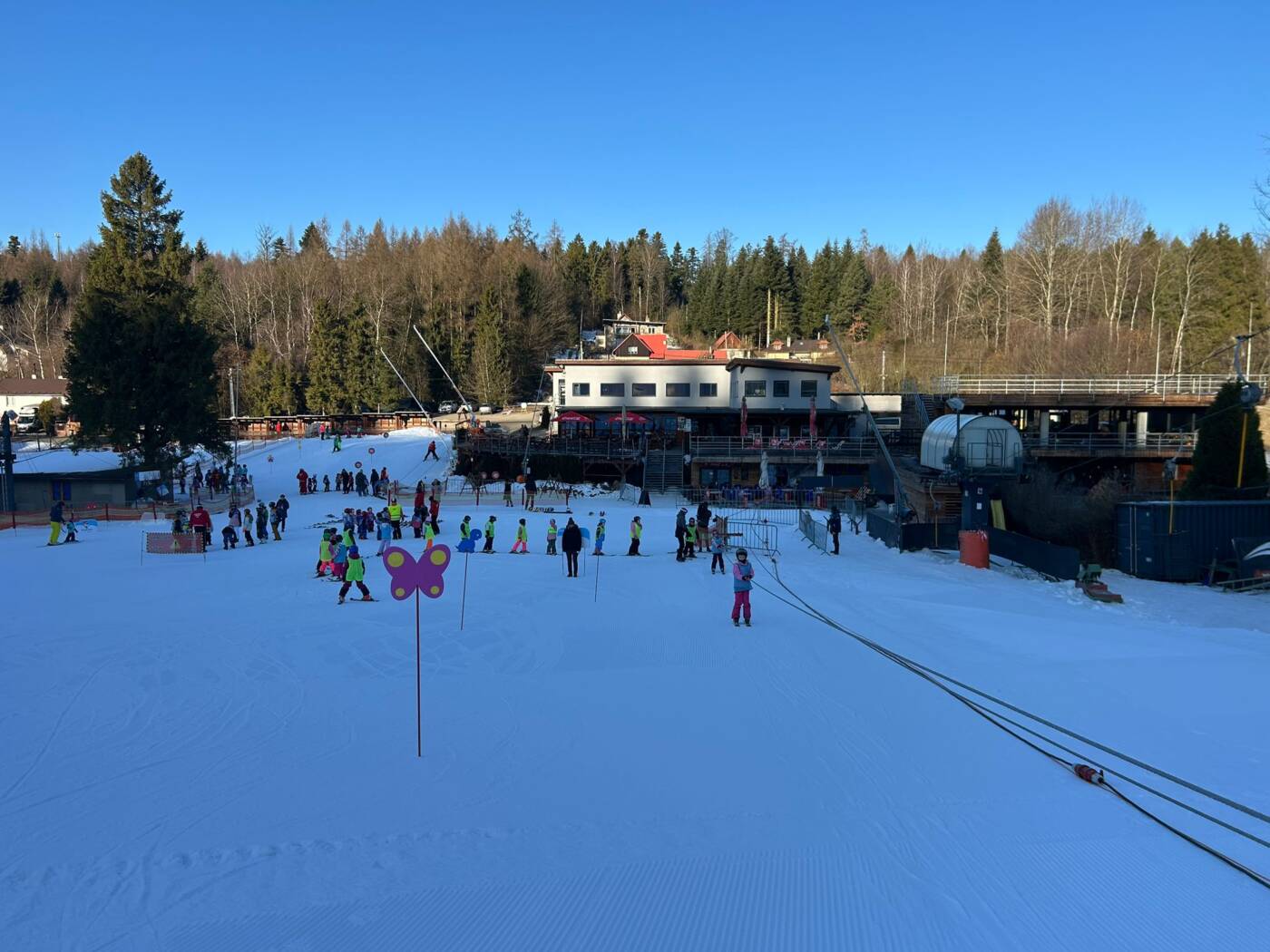 Druhý den lyžařského kurzu nás přivítalo azurové nebe, počasí téměř jako v Alpách. Děti byly od prvních chvil plné energie a bylo vidět, jak rychle dělají pokroky. Na svahu se pohybovaly s větší jistotou a lyžování si opravdu užívaly.