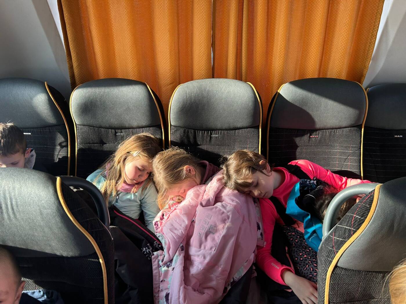 Čerstvý vzduch, pohyb a radost ze sněhu udělaly své – ještě před odjezdem autobusem některé děti únavou spokojeně usnuly. Za námi je další krásný den plný zážitků.