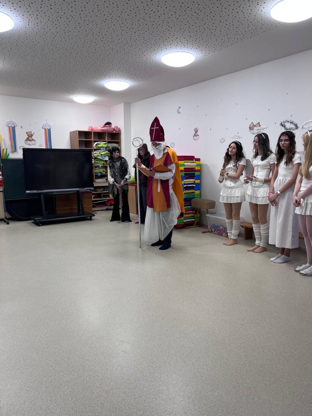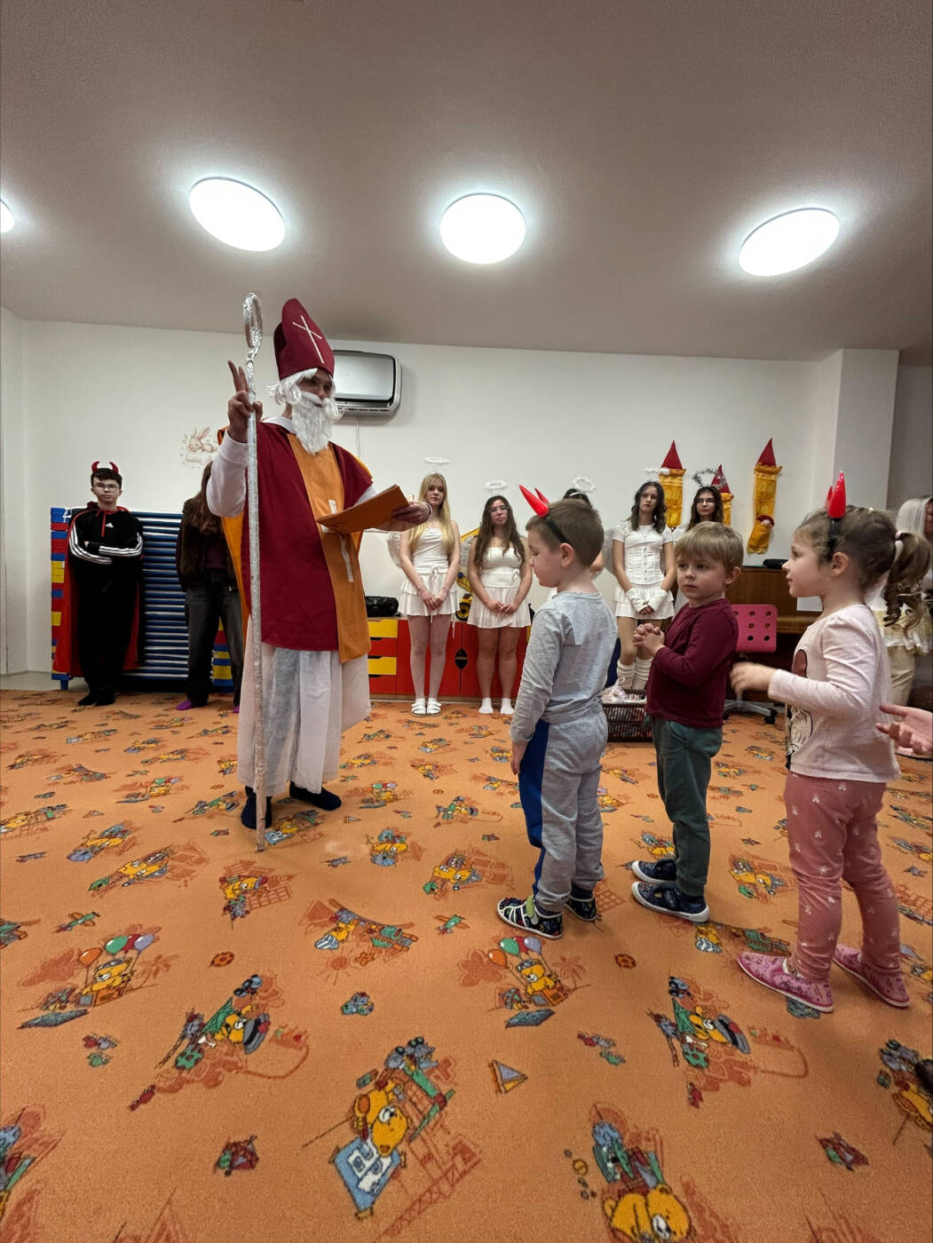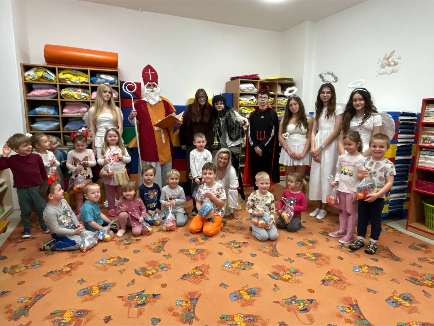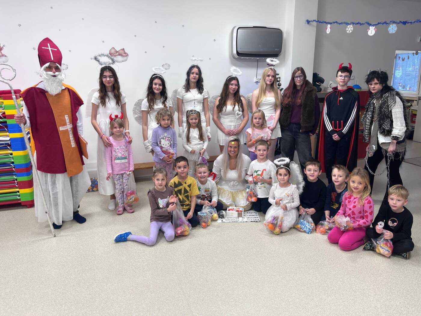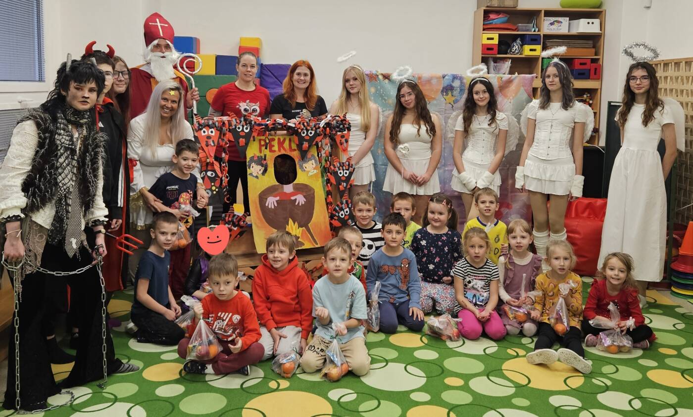Do naší mateřské školy dnes zavítala Mikulášská družina. Navštívila všechny třídy a už od začátku navodila příjemnou a slavnostní atmosféru. Děti se společně s Mikulášem, anděly i čerty naučily veselou písničku s jednoduchými pohyby, která všechny velmi pobavila.