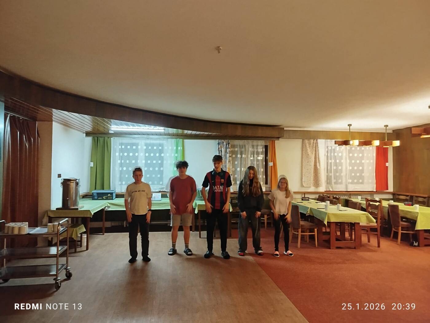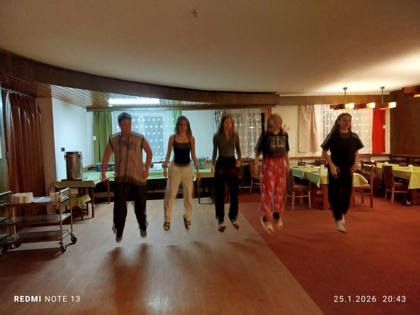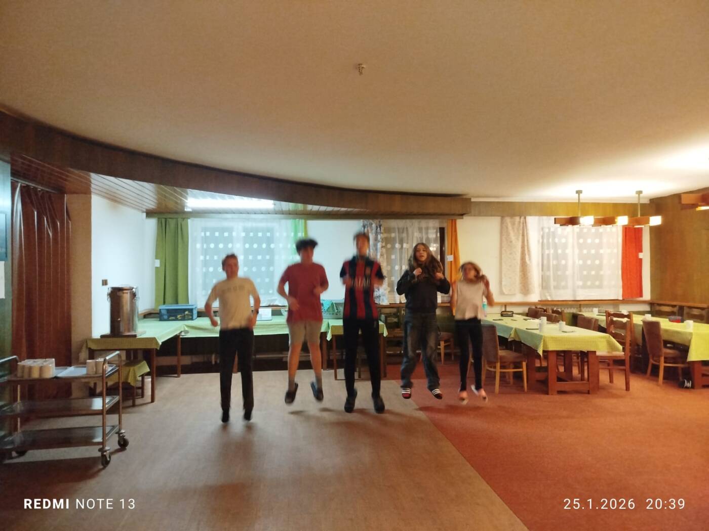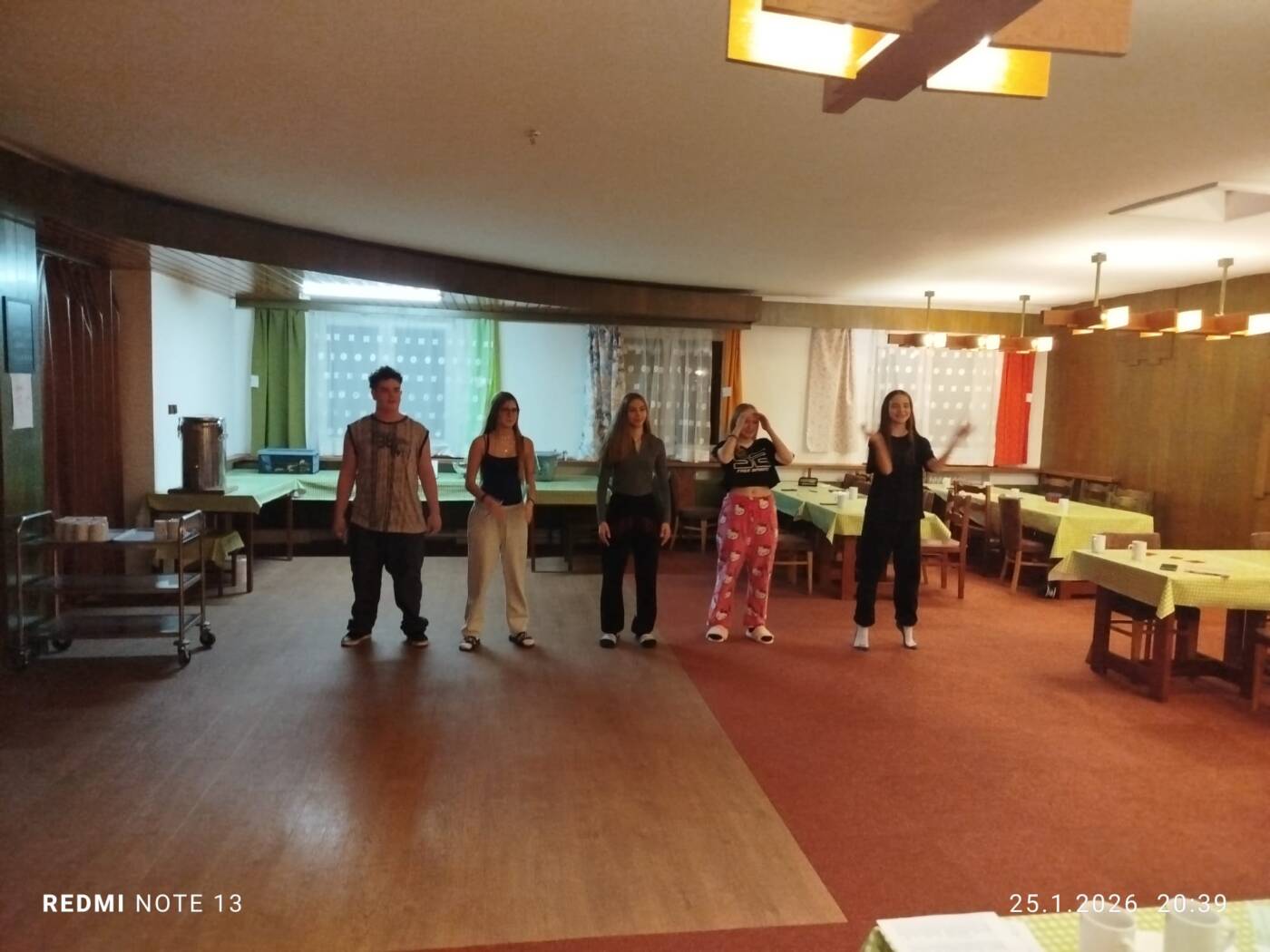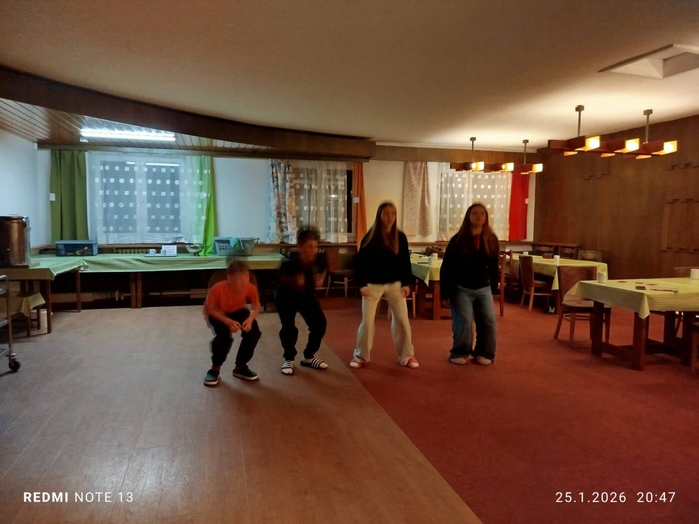 Druhý den ozdravného pobytu jsme zahájili bohatou snídaní a následnou přednáškou o bezpečném chování na sjezdovce. Nechybělo ani seznámení s lyžařskou výzbrojí a výstrojí. Po obědě a krátkém odpoledním klidu jsme se konečně vydali na svah, kde jsme začali zdokonalovat své lyžařské dovednosti. Po večeři nás čekal společný program v podobě první aktivity z celopobytové hry. Žáci sbírali body ve hře šestý smysl a nechyběly ani bodované skupinové tanečky. Už se nemůžeme dočkat, co nám přinese třetí den.