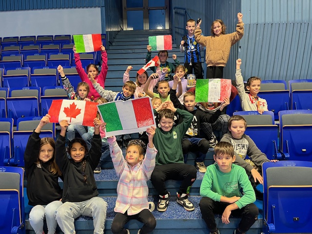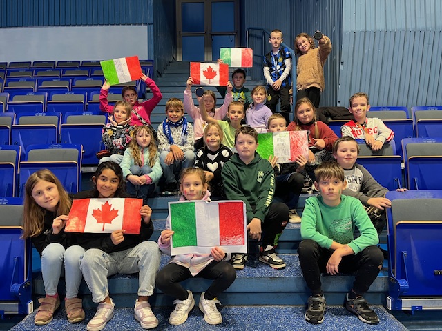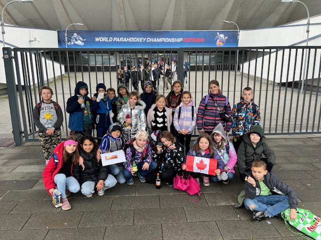 Žáci se mohli podívat na zápas v parahokeji mezi Itálií a Kanadou. Pomohli vytvořit atmosféru pro hráče a i oni samotní si to užili.
