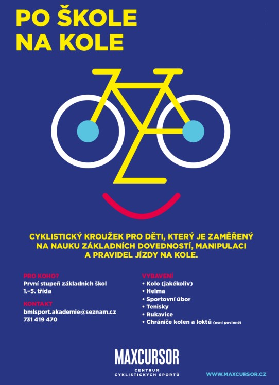 Od dubna 2026 opět otevřeme na naší škole cyklistický kroužek pro žáky 1. – 5. třídy Po škole na kole. Bližší informace najdete v přílohách.