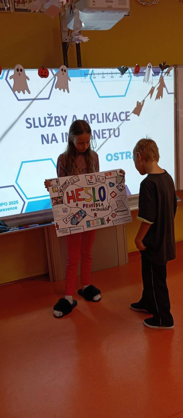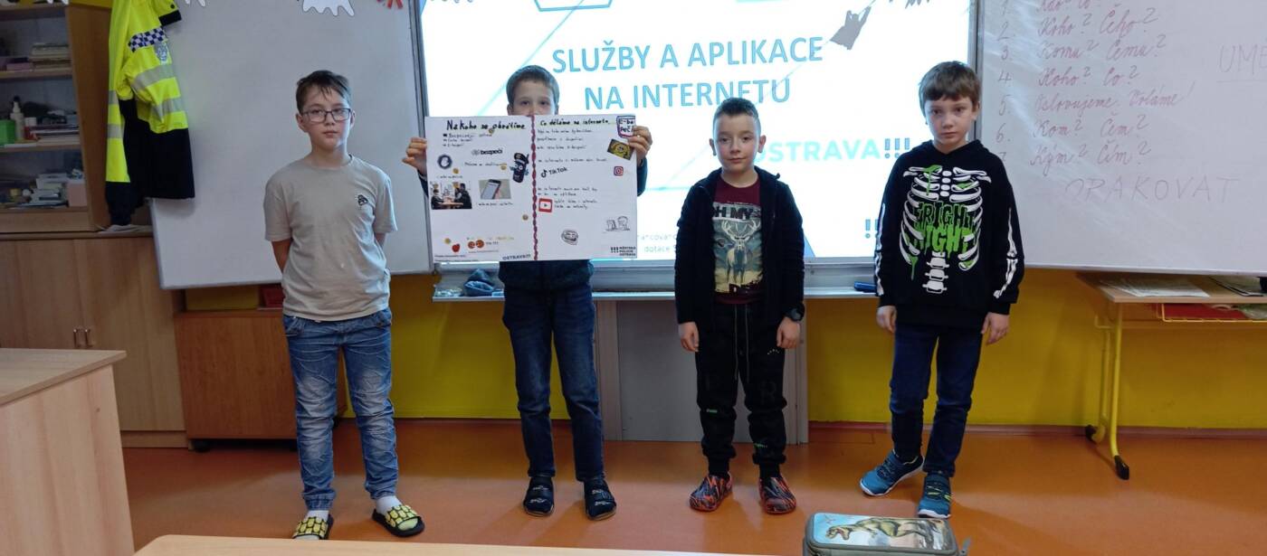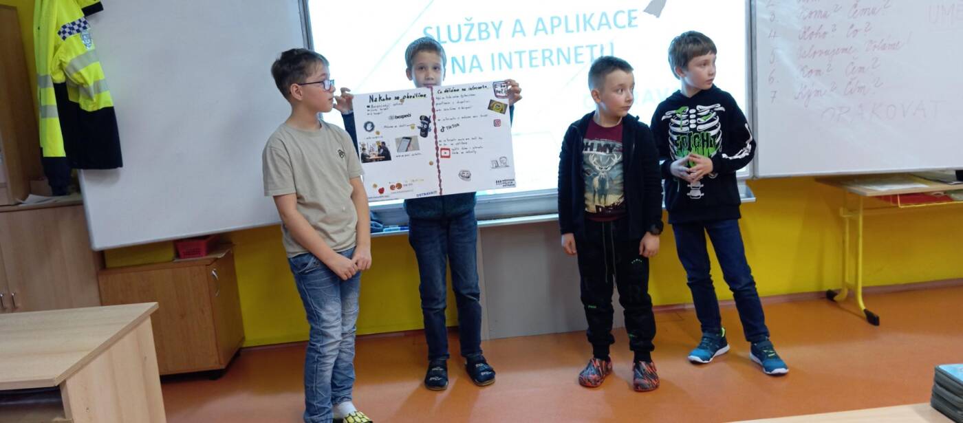 V pátek 24.10. jsme opět měli setkání s městskou policií. Ve třídě u nás byli i žáci 5.A, kteří nám prezentovali své výtvory z minulé besedy na téma Služby a aplikace na internetu. V druhé části hodiny prezentovali své výtvory na stejné téma i žáci naší třídy páťákům.