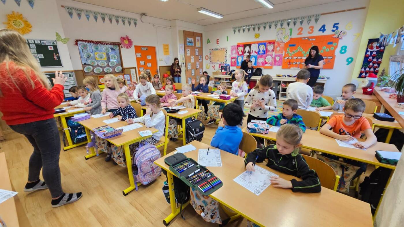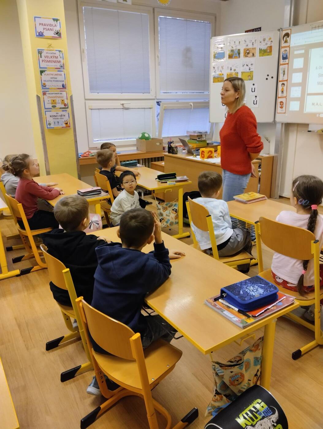 Dnes se děti z předškolních tříd Sovička a Koťátko vydaly na návštěvu do výuky prvních tříd naší základní školy. Hravou formou se seznámili s činnostmi, které je od září ve škole čekají – vyzkoušeli si psaní, čtení i zpívání, splnili jednoduchý pracovní list a nechyběli ani didaktické hry. Prohlédli si krásné, barevné třídy a nahlédli do školního života prvňáčků.