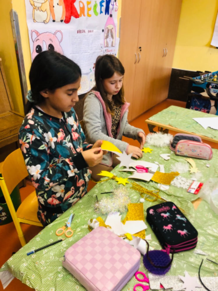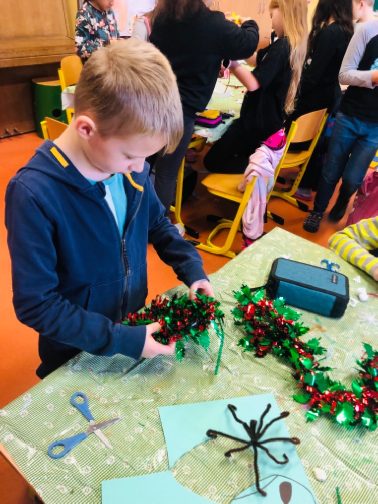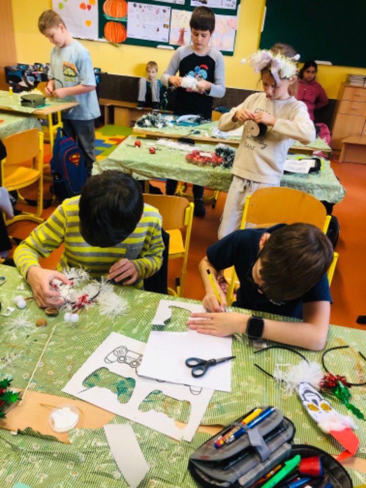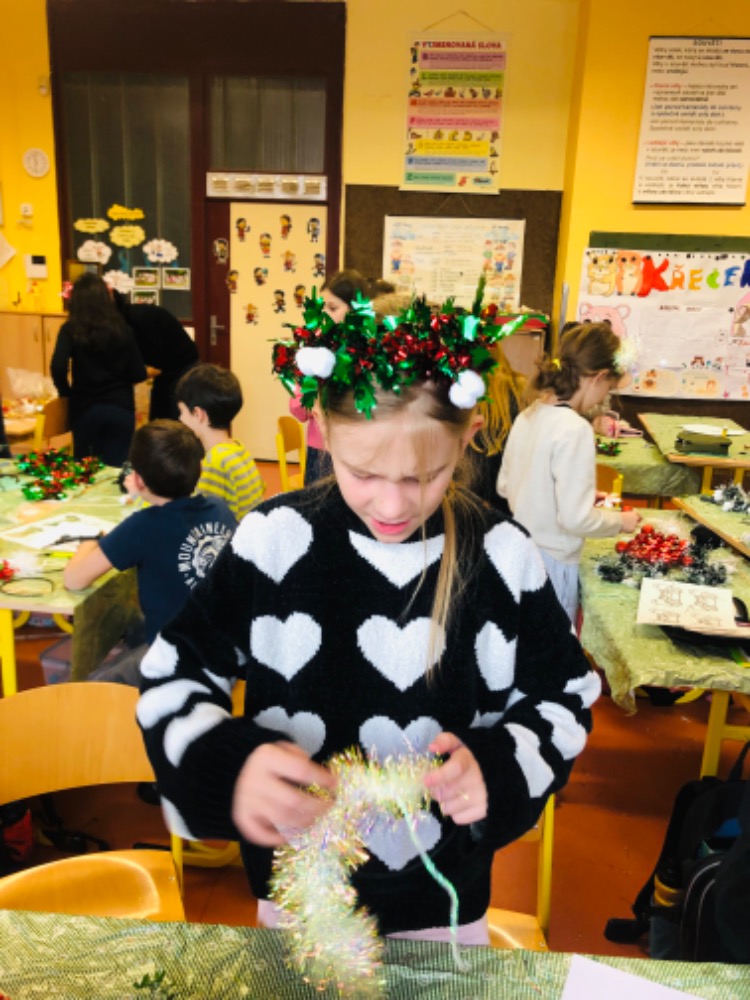 Připravujeme se na školní Jarmark – vyráběli jsme veselé vánoční a silvestrovské čelenky