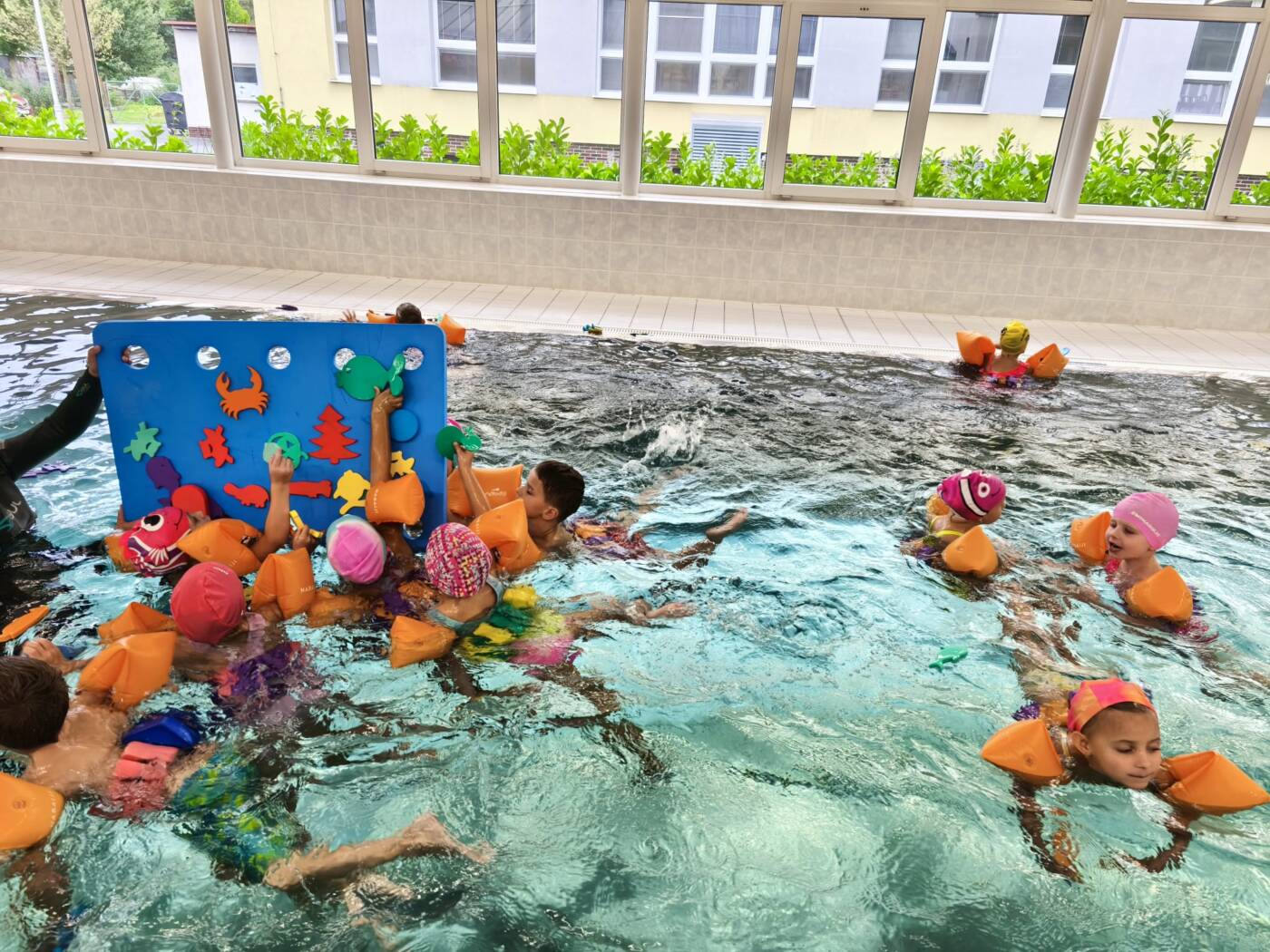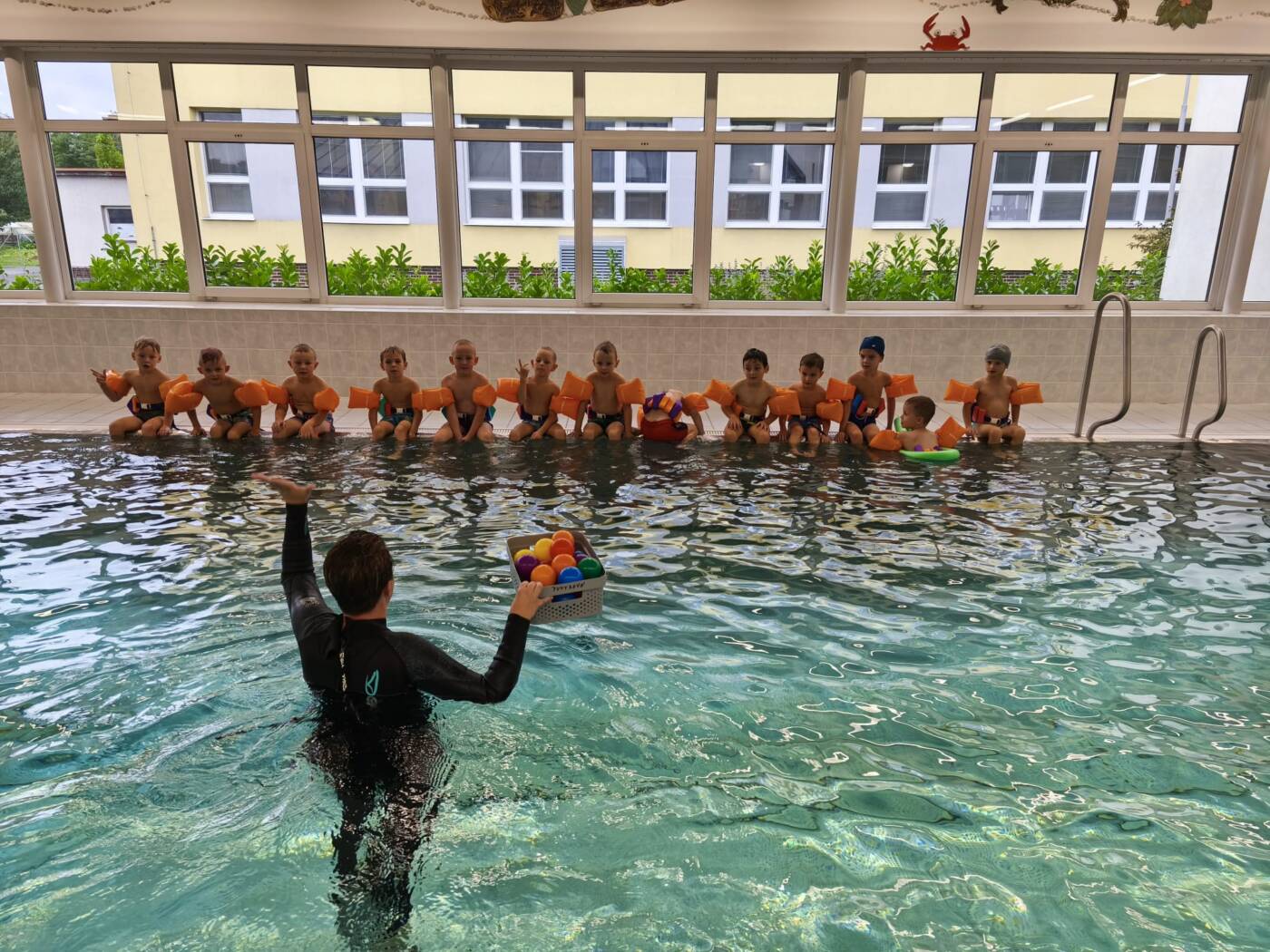 Děti si dnes užily svoji první lekci plavání, kde se seznámily s pravidly chování na bazéně a bezpečnostními zásadami pod vedením strejdy Čendy a tety Dáši. Společně se učily používat plavecké pomůcky, hrály si s míčky a užívaly si radost z pohybu ve vodě. Už se těší na další plavecká dobrodružství!