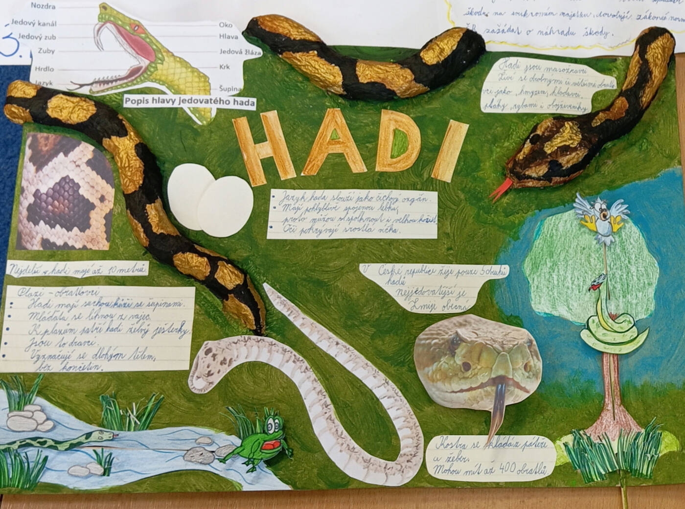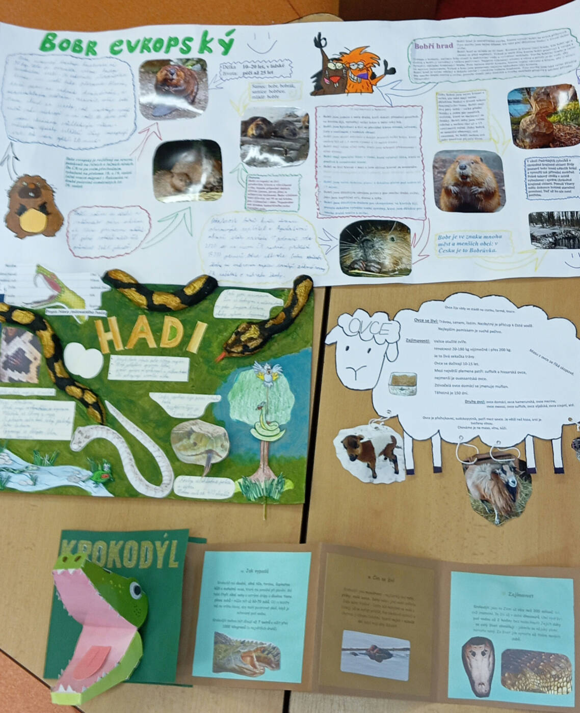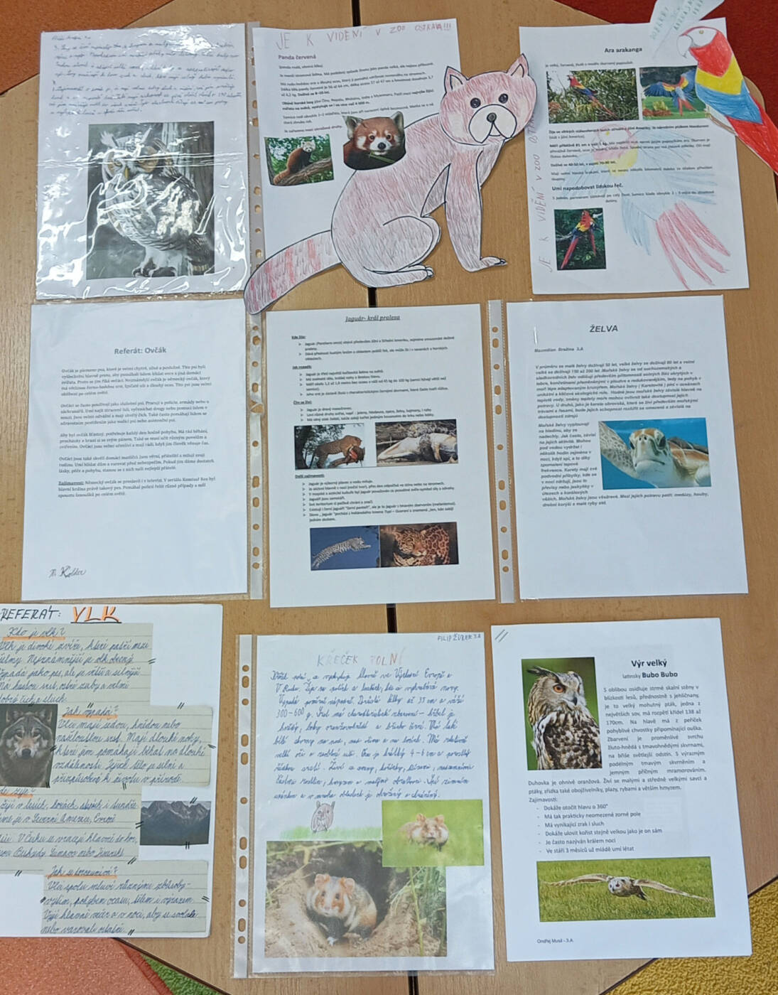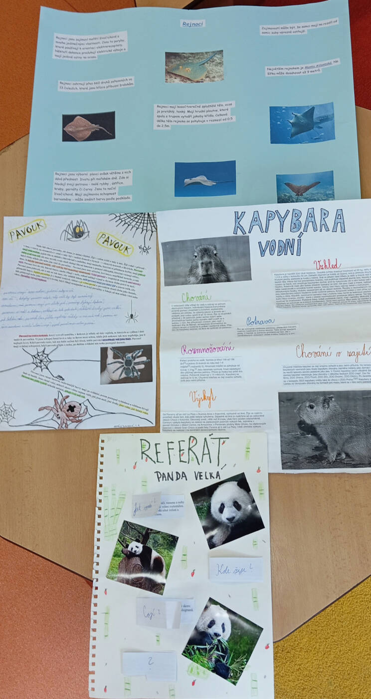 Děti měly za úkol připravit si doma referát do věd o jednom vybraném živočichovi (nebo jednom druhu). Všichni žáci úkol splnili na jedničku! Referáty se jim moc povedly, někteří si s výrobou dali hodně práce.