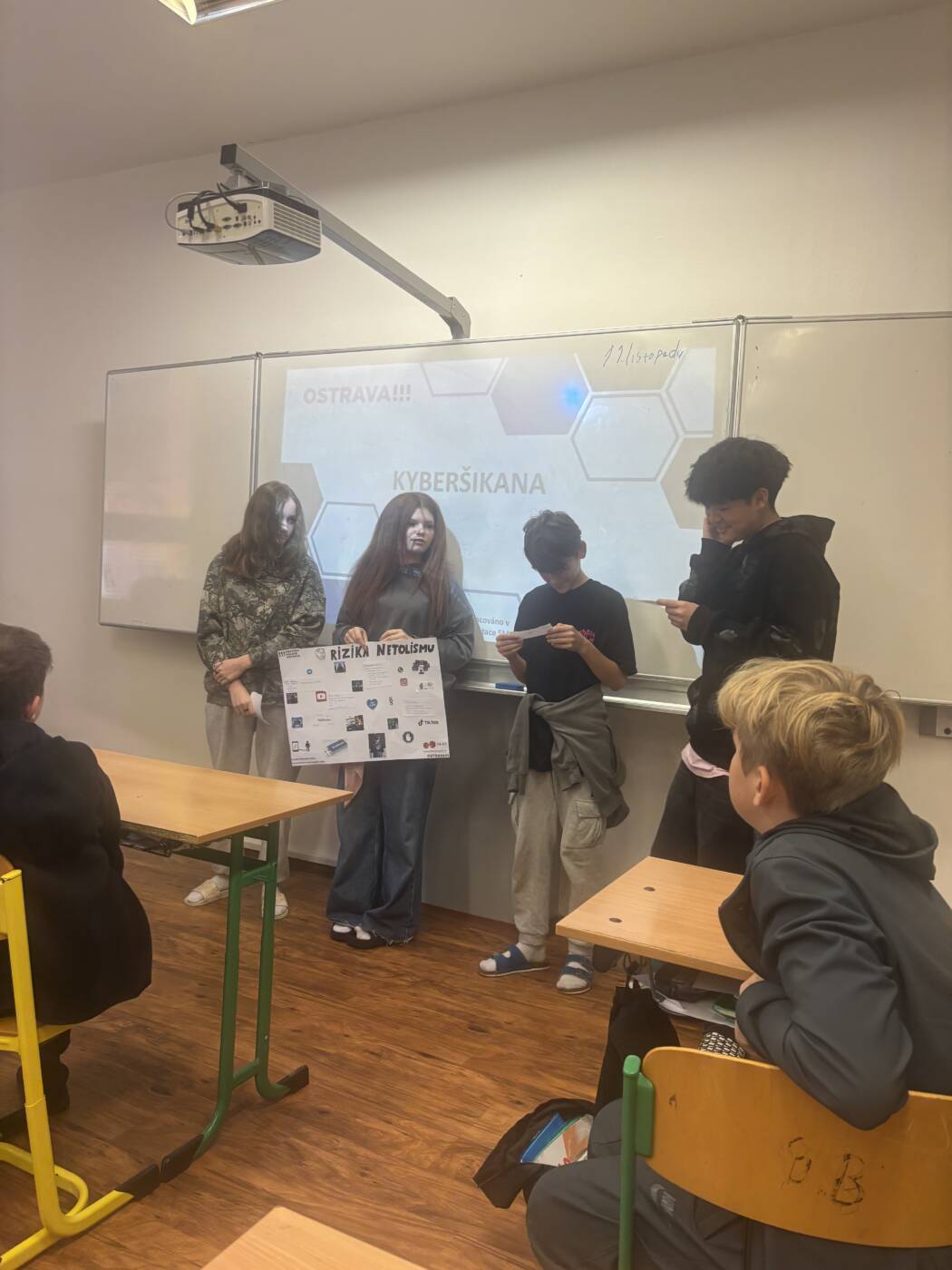 Tentokrát se šesťáci věnovali kyberšikaně – naučili se, jak ji rozpoznat, jak na ni reagovat a kam se v případě potřeby obrátit o pomoc.
