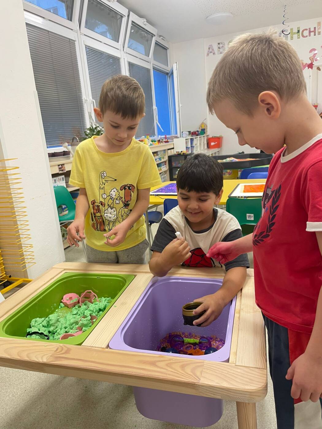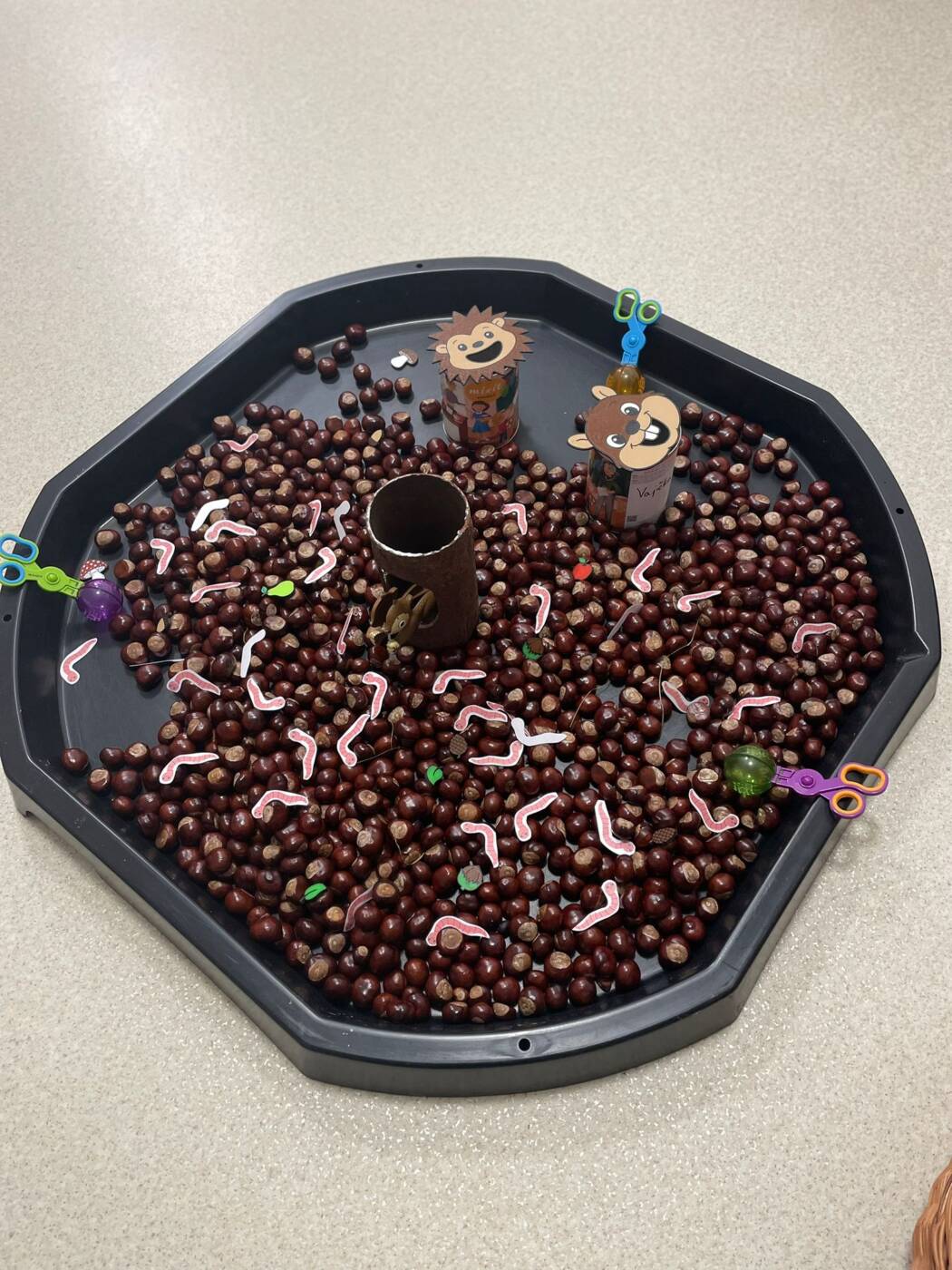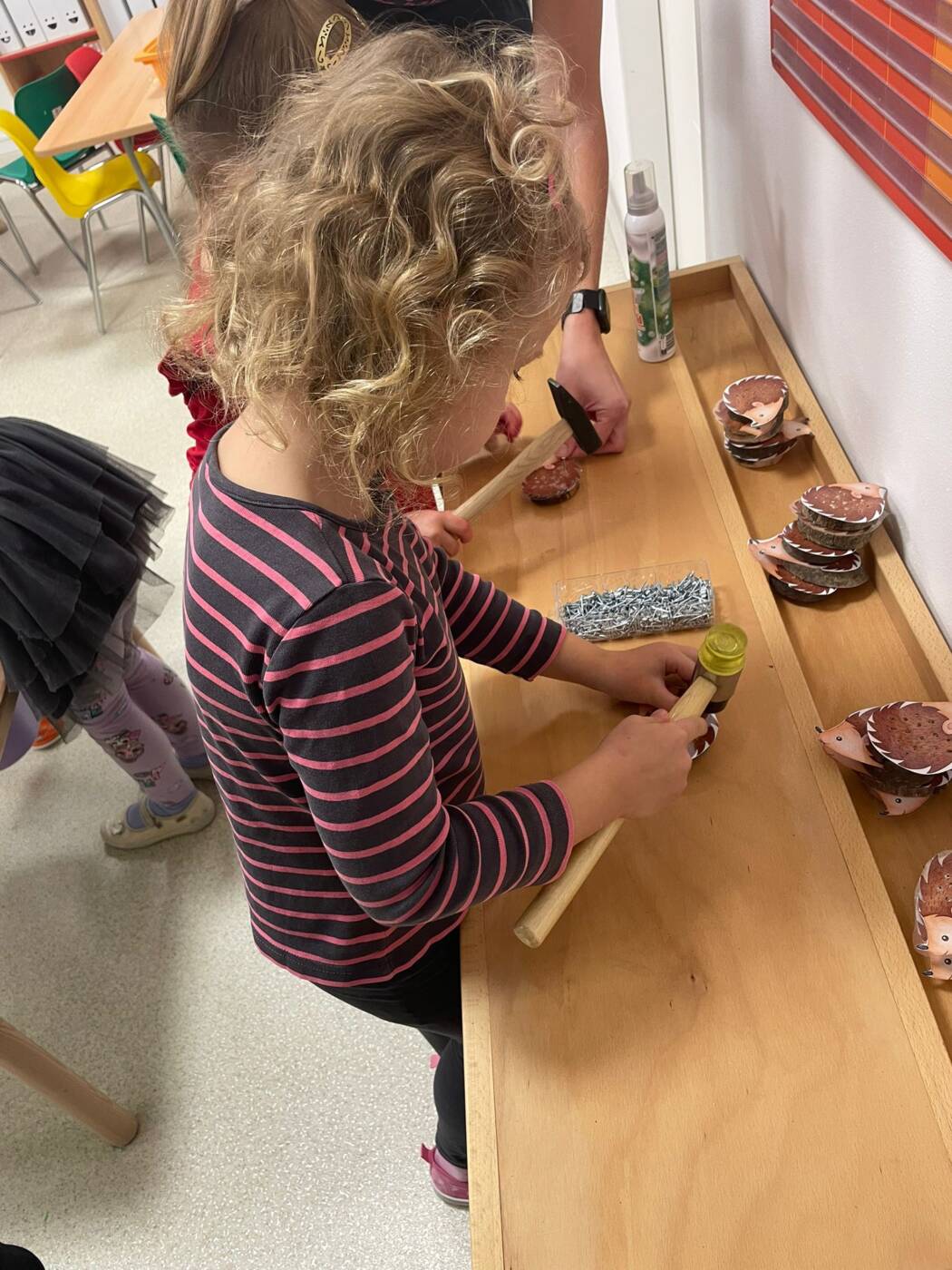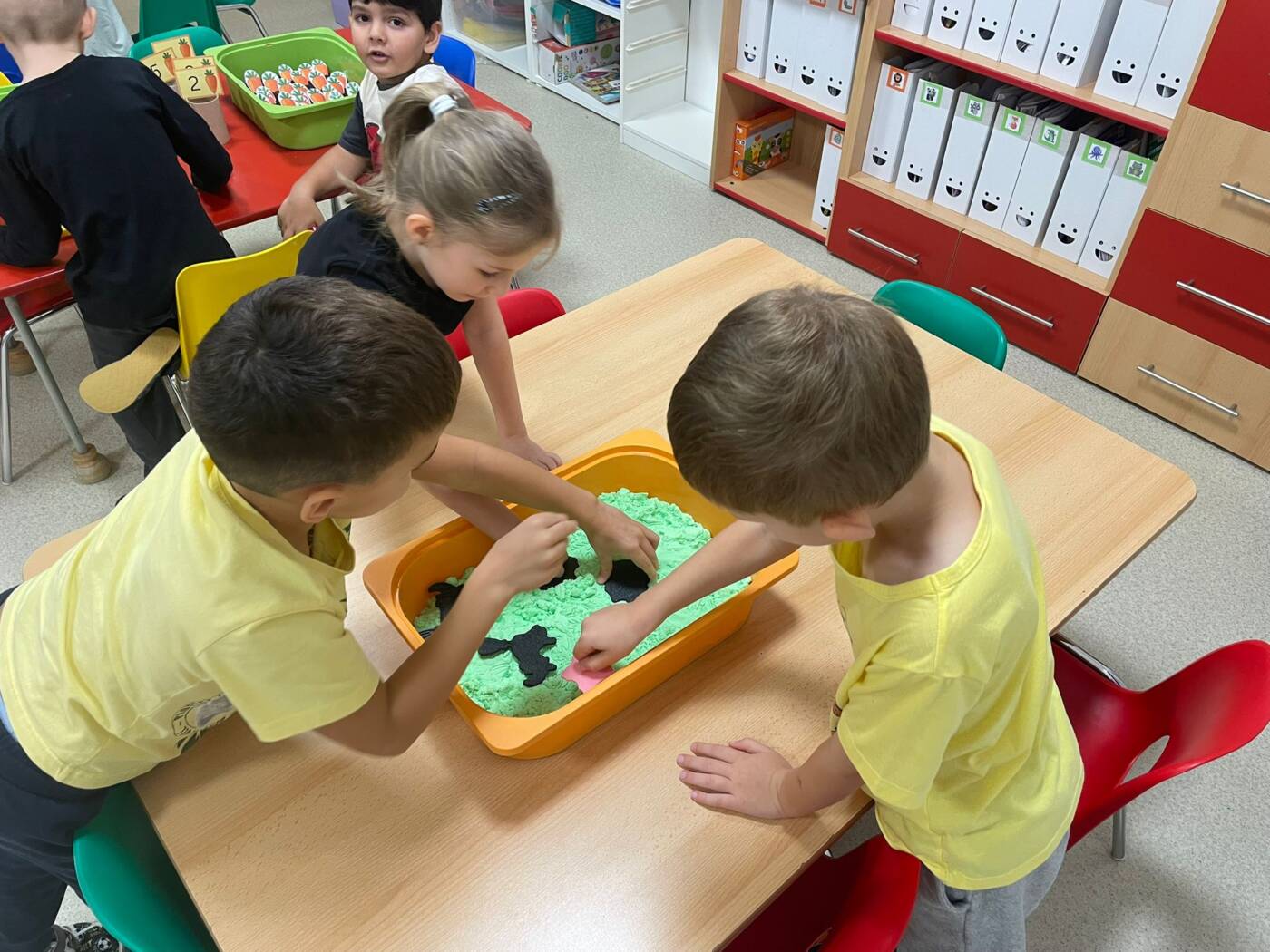 Koťátka si užila Smyslohrátky – hledali jsme poklady v želé i slizu, stříhali čarodějnické vlasy ze špaget, lovili vodní perly a tahali mrkvičky pinzetou. Našli jsme i pár magnetických pokladů v barevné rýži, nakrmili hladová zvířátka a zatloukli ježečkovi pořádnou dávku bodlinek. Prostě dopoledne, které mělo všech pět smyslů!