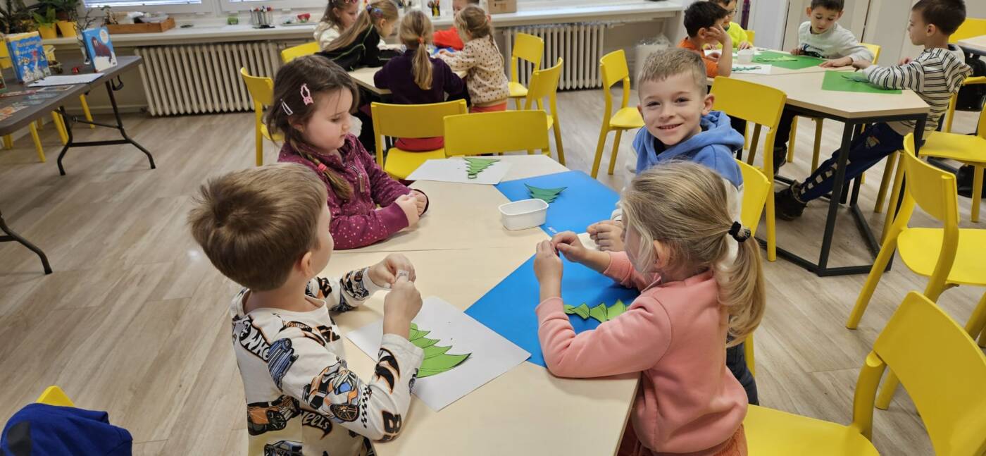 V tvořivé dílničce si pak každý vytvořil vánoční stromeček. Na závěr měly děti možnost prohlížet si knížky dle vlastního výběru. Celé dopoledne si všichni moc užili a odnesli si spoustu hezkých zážitků.