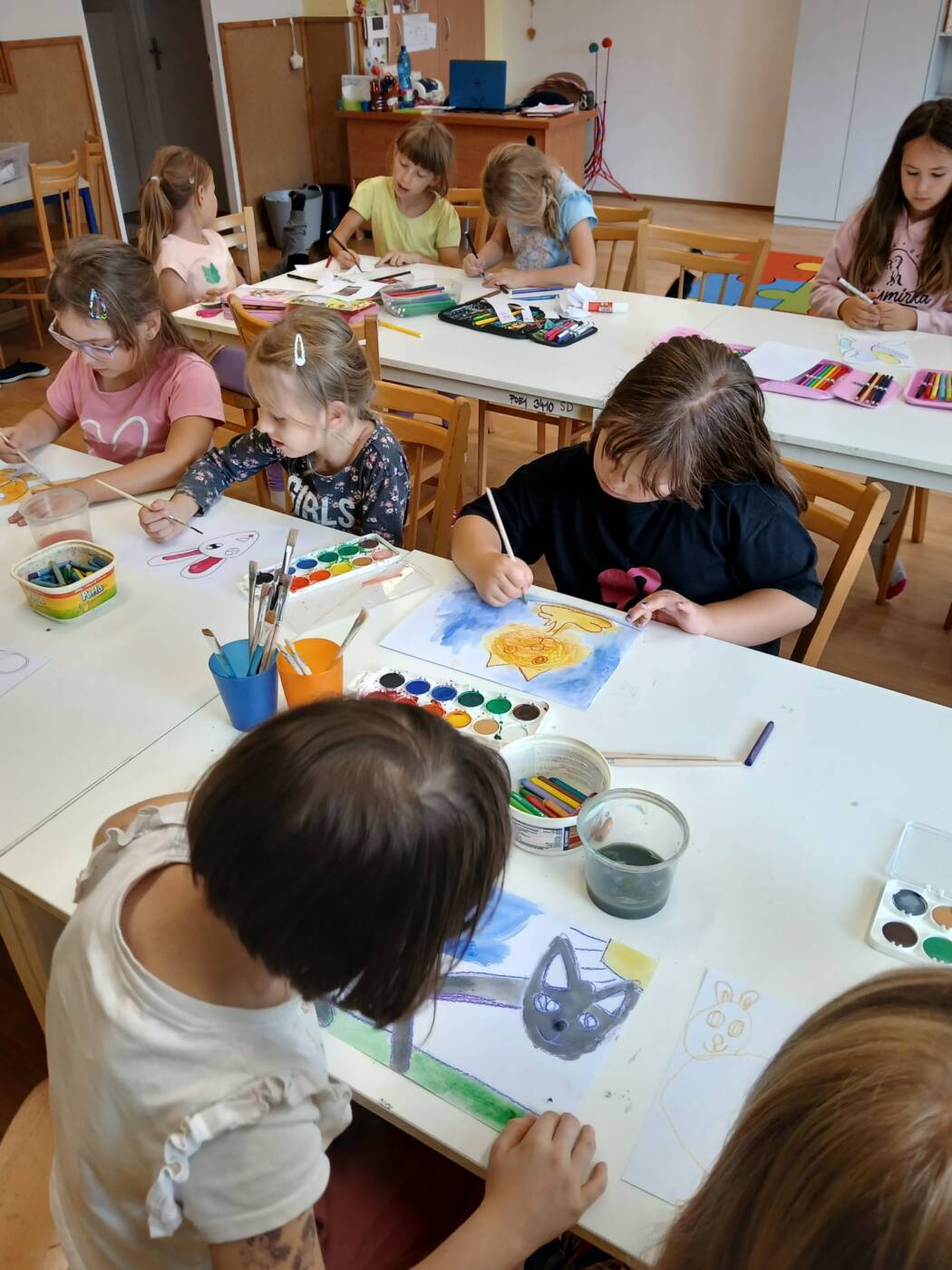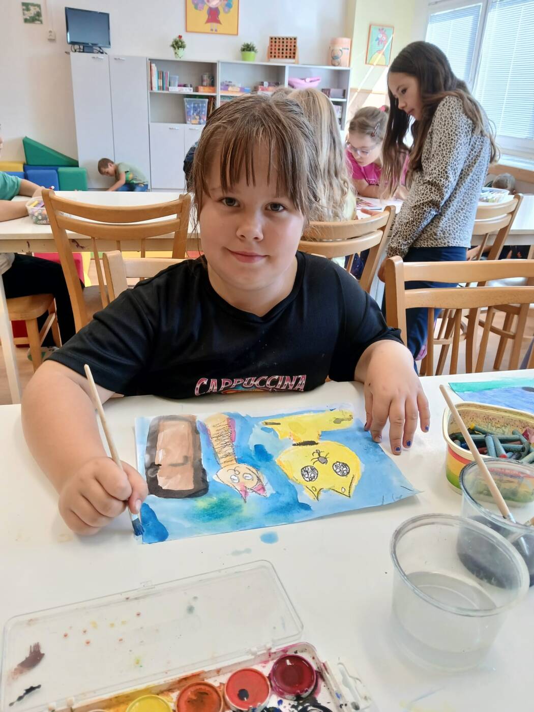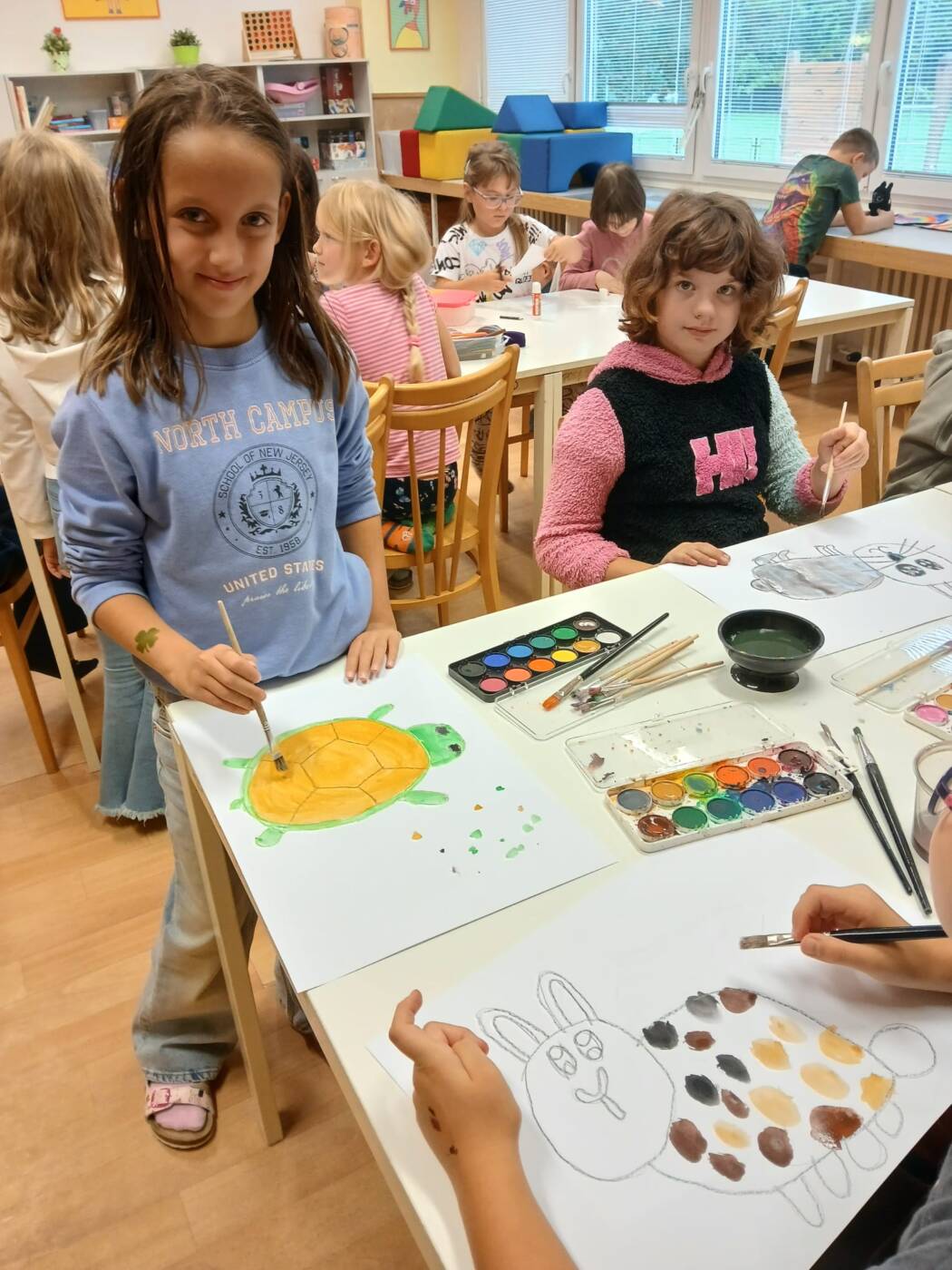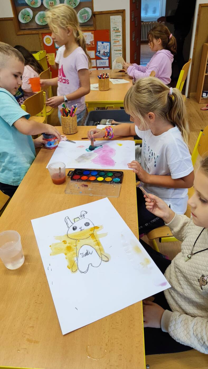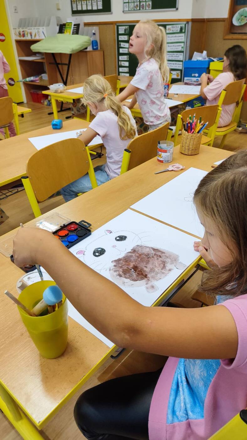 Děti z naší družiny se také zapojily do příprav ke Dni mazlíčků a malovaly veselé obrázky zvířátek různými výtvarnými technikami. Ve fotogalerii můžete zhlédnout, jak se jim krásně podařilo zachytit jejich zvířecí kamarády a jak si tuto činnost s radostí užívaly.
