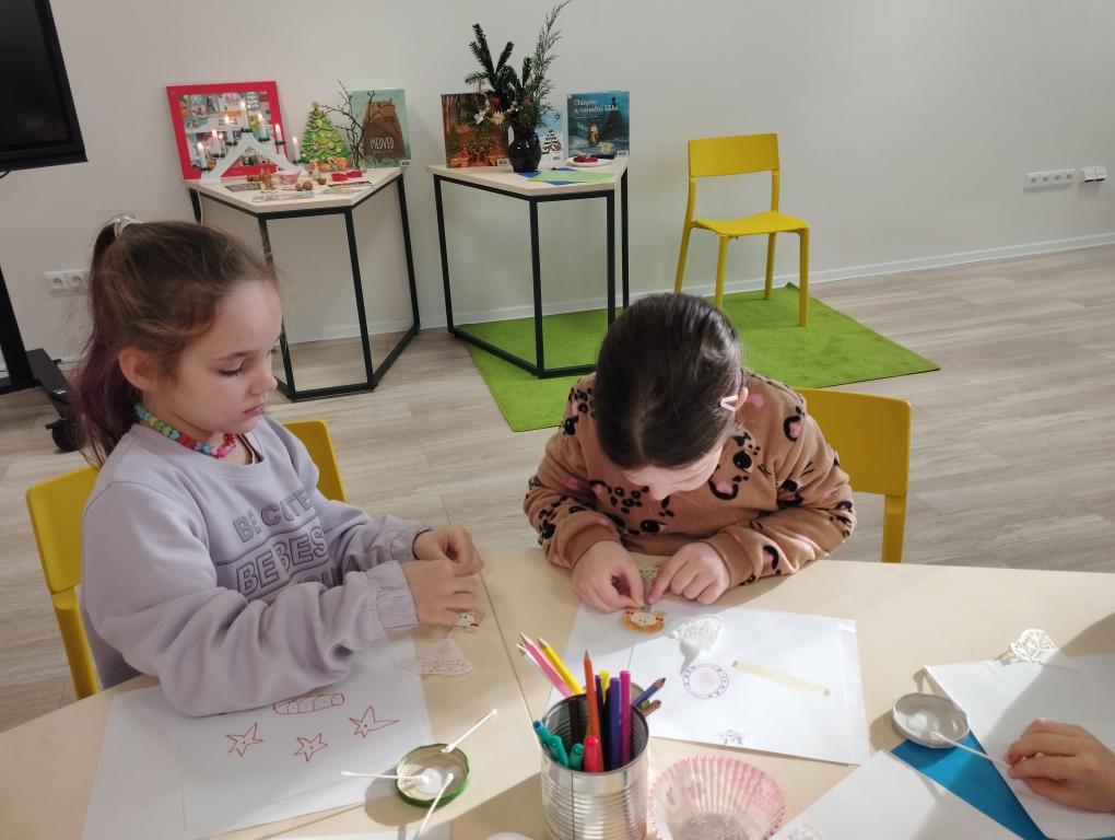 Dne 4.12. jsme navštívili knihovnu v Zálomu, kde děti absolvovaly besedu na téma „Vánoce, Vánoce přicházejí“. Povídaly si o adventu a lidových zvycích během Vánoc. Součástí byla také tvůrčí dílna, během které si děti vytvořily vánoční dekoraci.