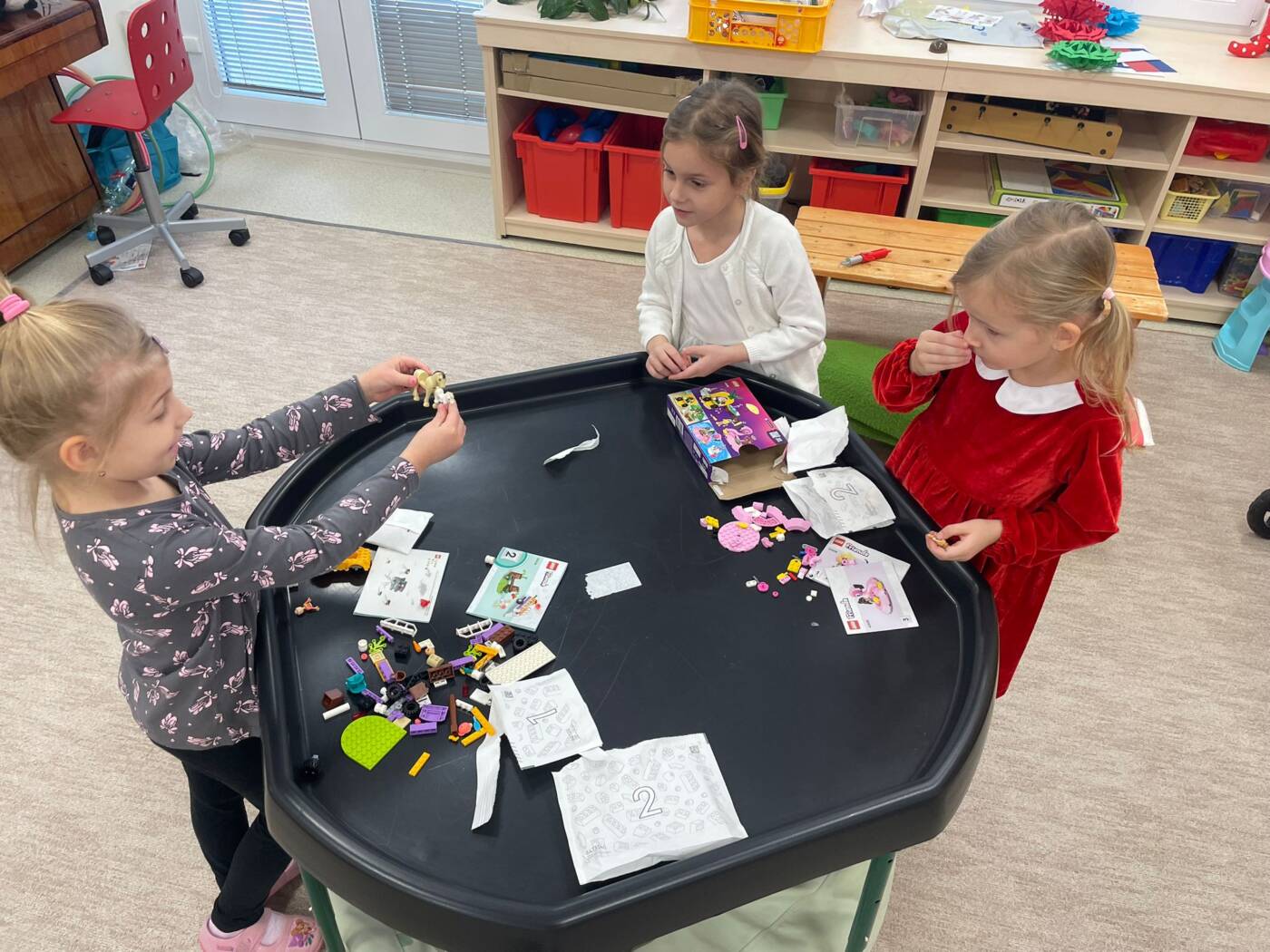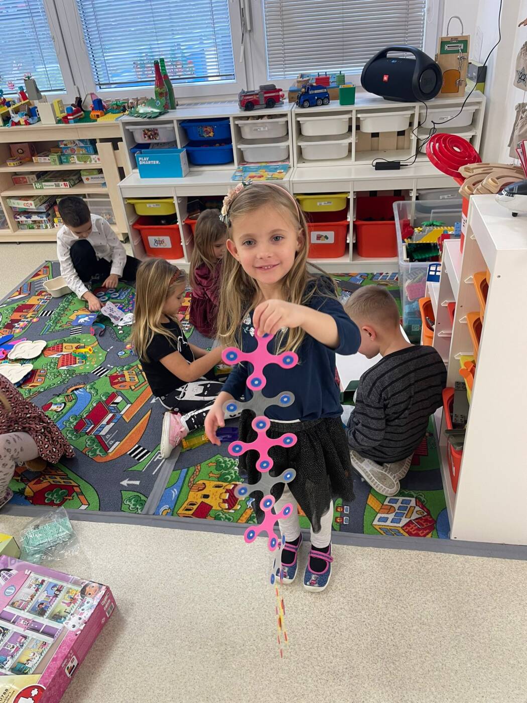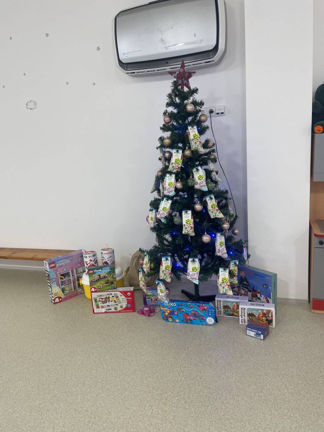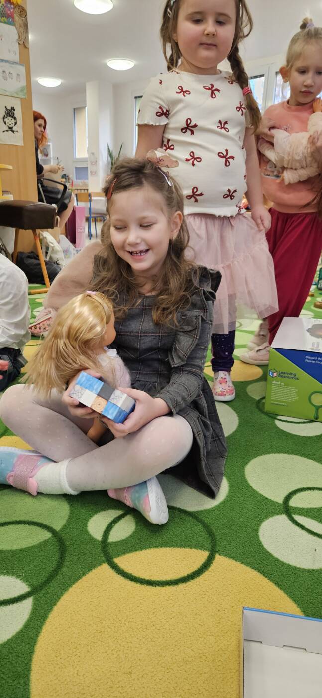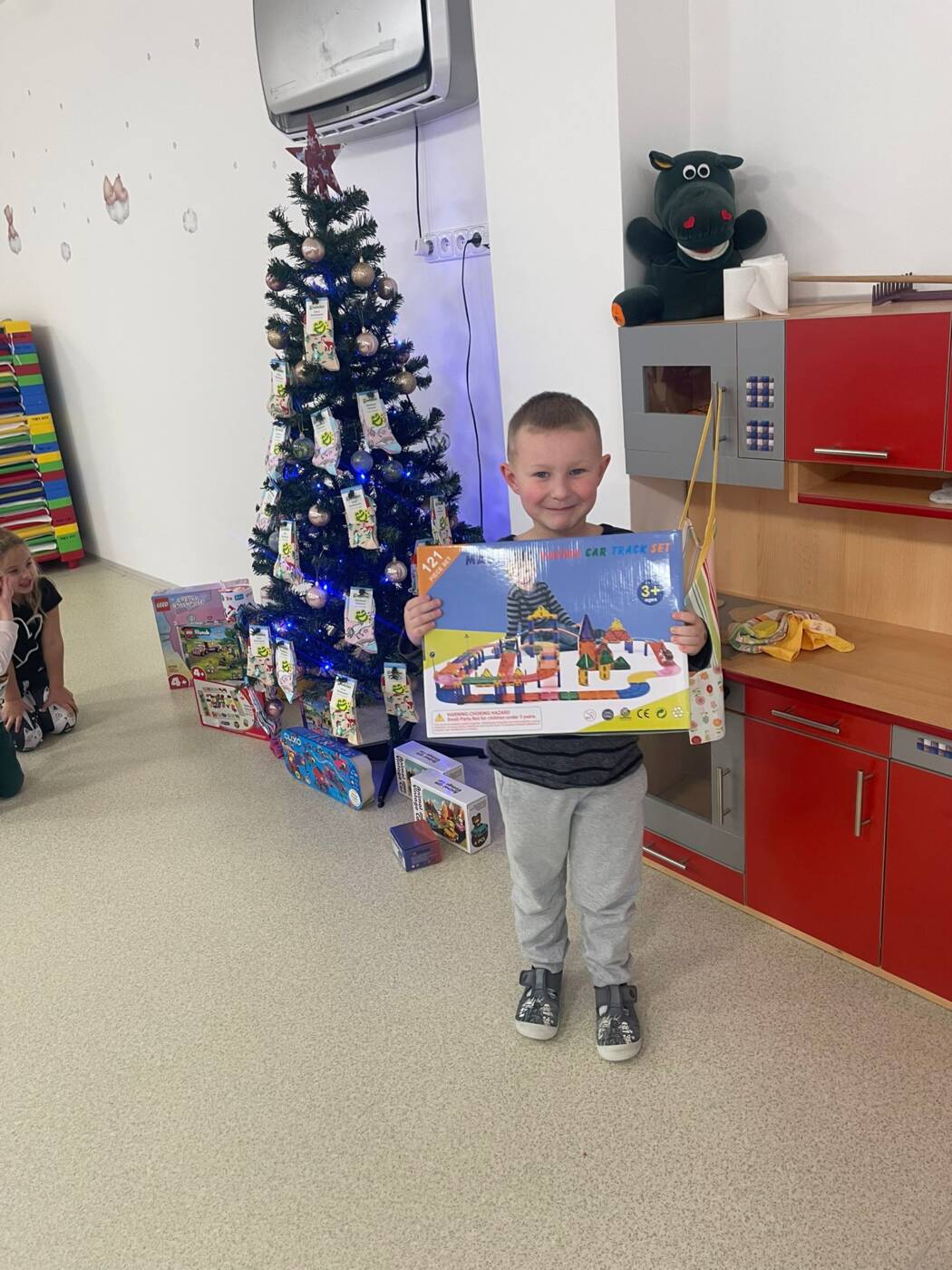 Už od rána kluci a holky vyhlíželi Ježíška. Ze všech tříd bylo slyšet koledy, děti si vyprávěly o tradicích a ochutnávaly cukroví, které si ve školce společně upekly. Na svátečně prostřených stolech nechybělo exotické ovoce, slané a sladké dobrůtky a dětské šampaňské. Všichni čekali na cinkot zvonečku a překvapení pod stromečkem, kde byly nádherné nové hračky. Celý den byl zahalen do sváteční atmosféry, plné radosti v dětských očích.