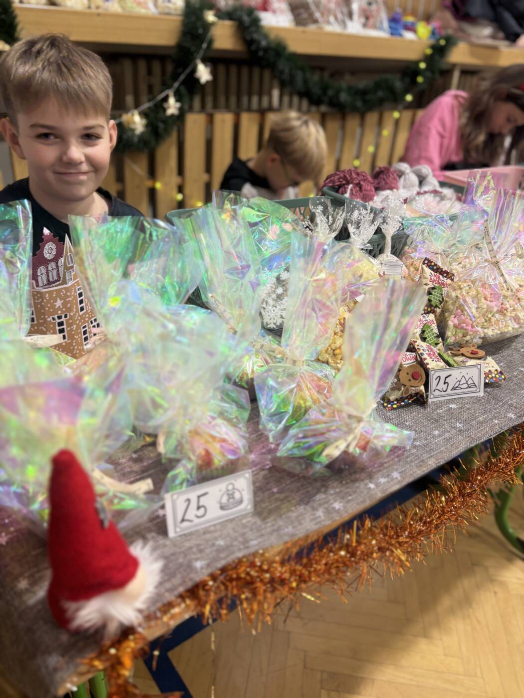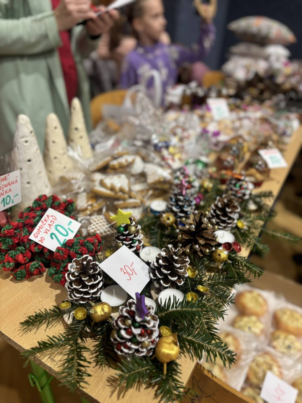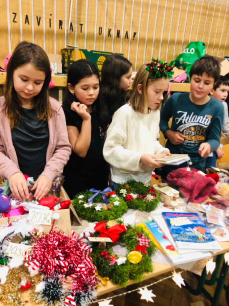 V úterý 25.11. to u nás ve škole vypadalo, jako by Ježíšek udělal zkušební jízdu a zastavil se rovnou u nás. Vánoční jarmark rozzářil chodby, atrium i tváře všech, kteří dorazili – a že nás bylo opravdu hodně! Na stáncích se prodávaly výrobky všech tvarů, velikostí i třpytivosti. Některé dárečky by směle obstály i v obchodě, jiné měly spíš „uměleckou duši“ – ale všechny byly vyrobené s láskou. Děti se staly malými obchodníky, kteří by si nejspíš bez problémů poradili i na vánočním trhu v centru města. Venku v atriu vonělo tak krásně, že bylo téměř nemožné projít kolem stánku s občerstvením bez ochutnávky. Teplé dobroty zahřály i ty, kteří si zapomněli rukavice – a bylo jasné, že někteří si přišli hlavně na punč (samozřejmě ten dětský). Workshopy plné tradic i fantazie lákaly nejen ke tvoření, ale také k zamyšlení se nad vánočními zvyky. Děti i dospělí si mohli vyzkoušet například: