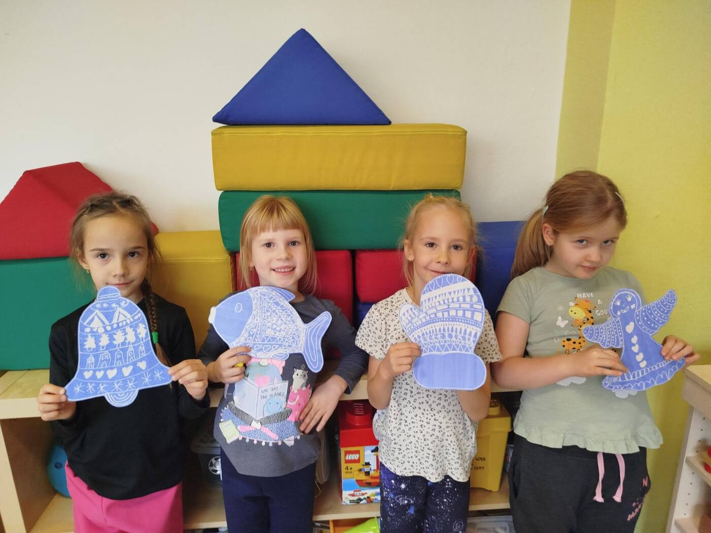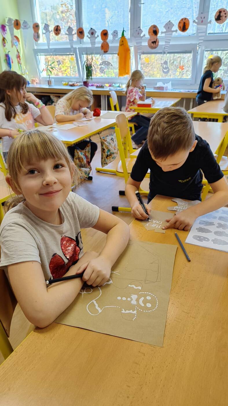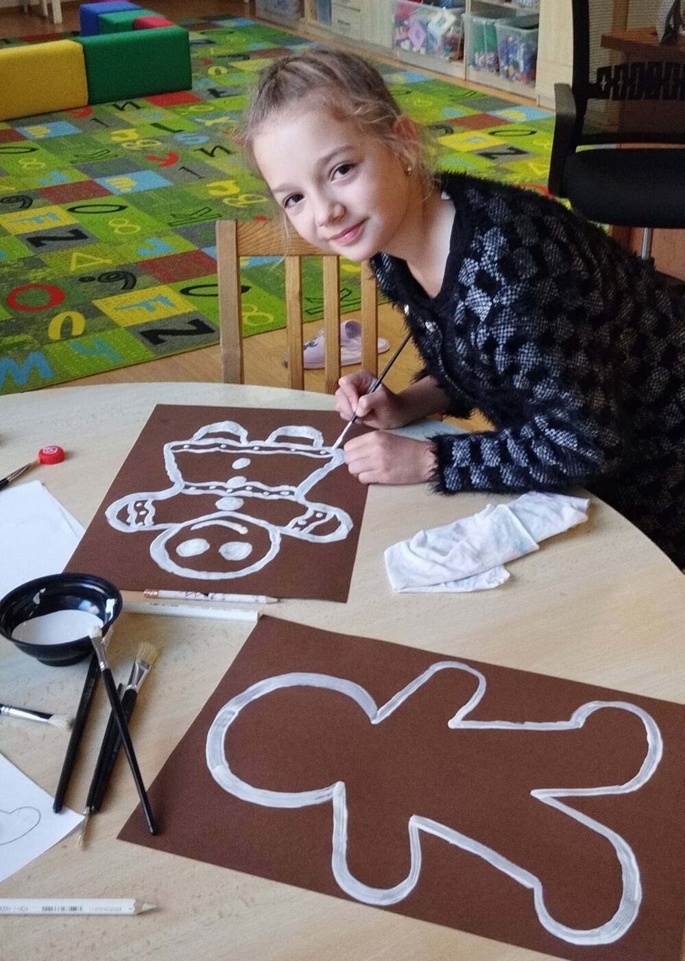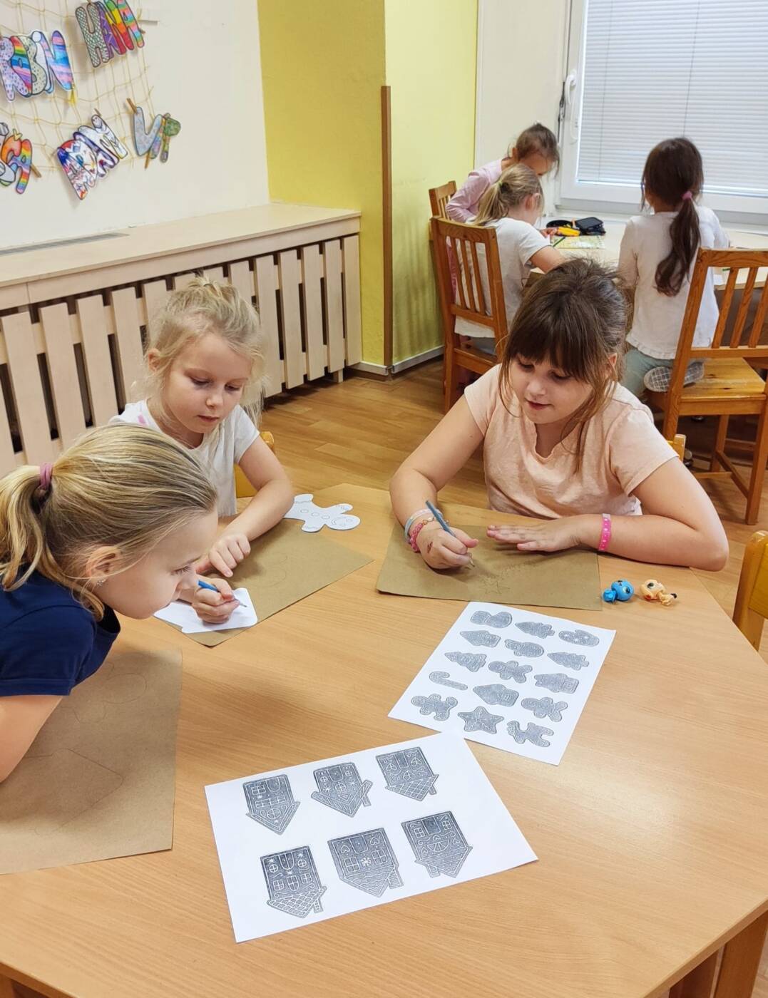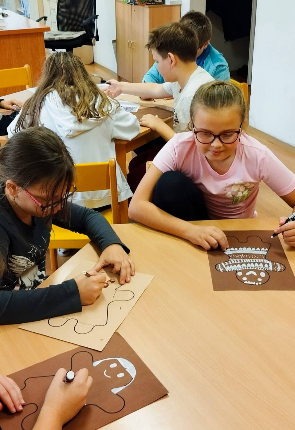 Děti v družince s radostí vytvářely obrázky s vánoční tématikou na barevný papír pomocí zmizíku a bílého fixu, takže jejich motivy krásně vystoupily na povrch. Jejich nápadité výtvory, které nyní zdobí jídelnu i keře před budovou, vytvářejí útulnou vánoční atmosféru a ukazují, jak kreativně dokážou děti pracovat s jednoduchými pomůckami.