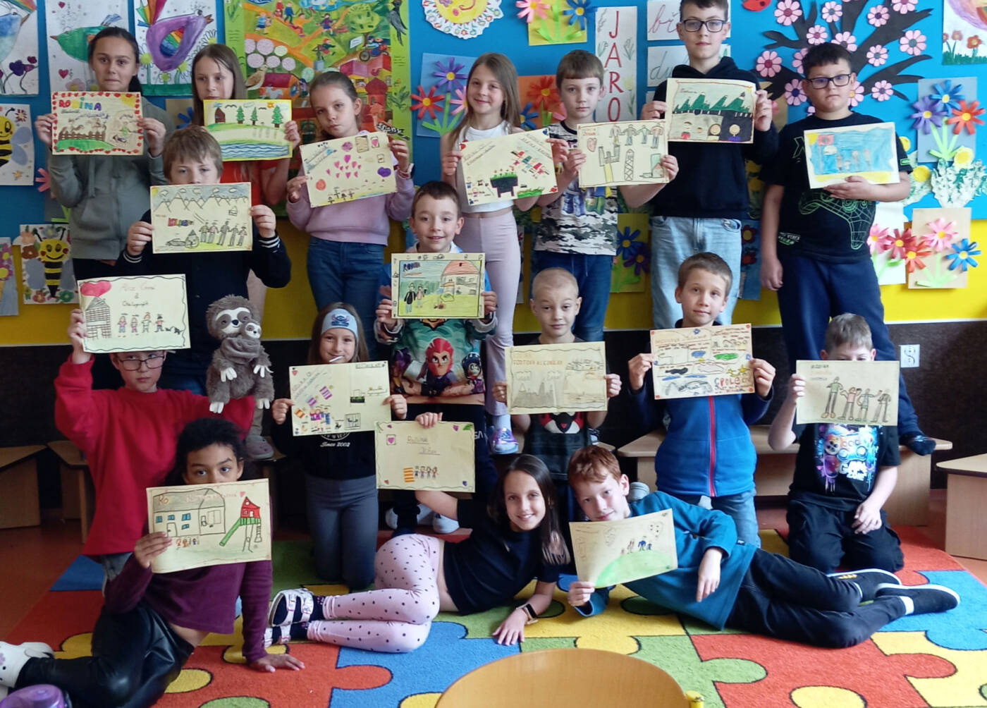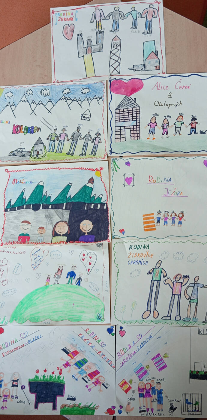 Ve výtvarné výchově žáci navrhovali, jak by mohla vypadat vizitka jejich rodiny.