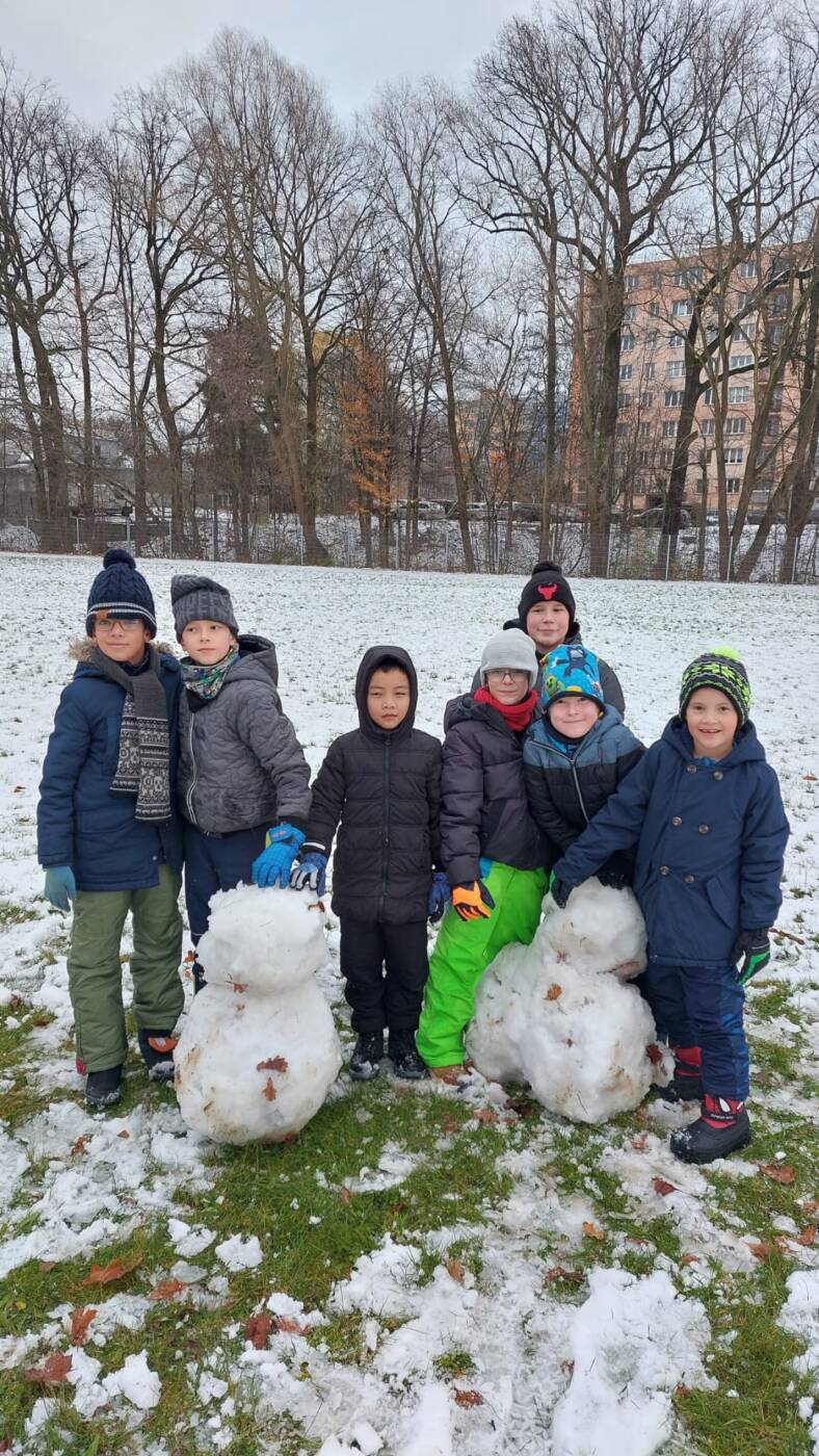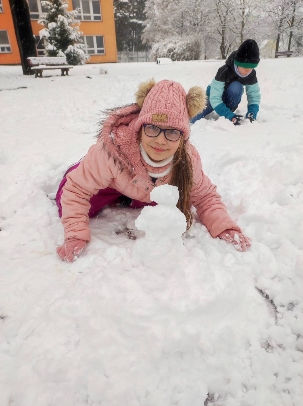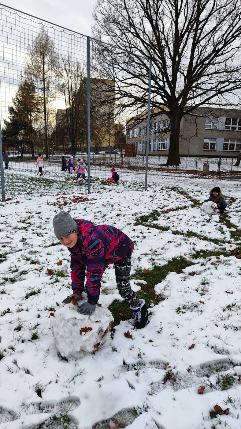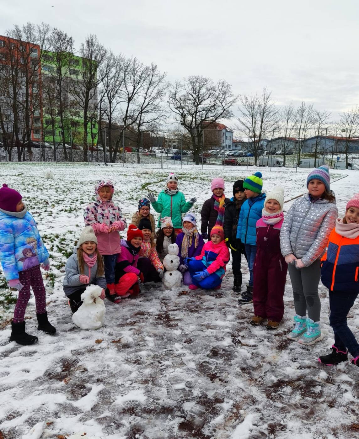 První sněhová nadílka proměnila naše školní hřiště v zimní království. Děti se s nadšením pouštěly do stavění sněhuláků a iglú a nechyběla ani pořádná koulovačka. Zimní zábava je úplně pohltila.