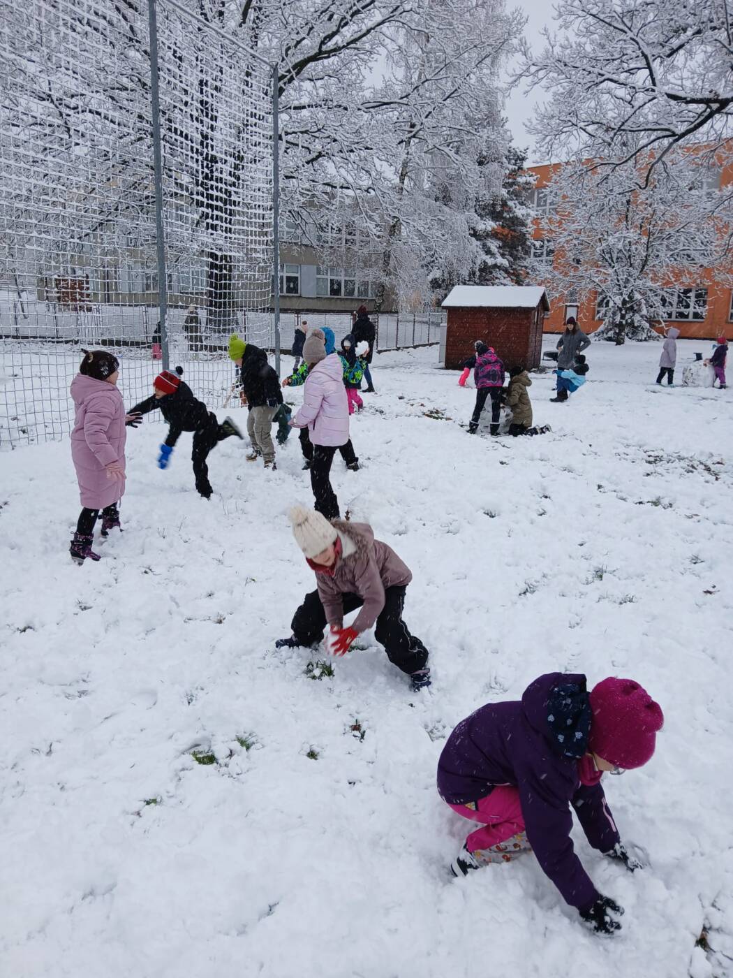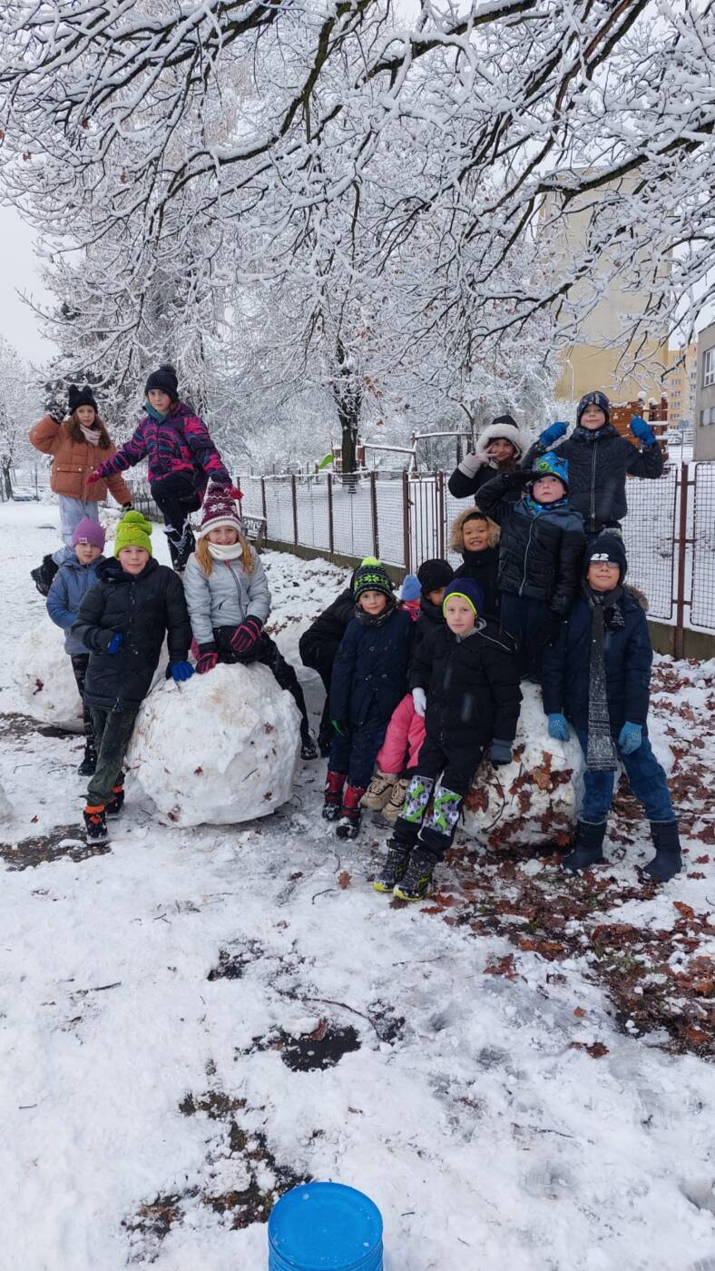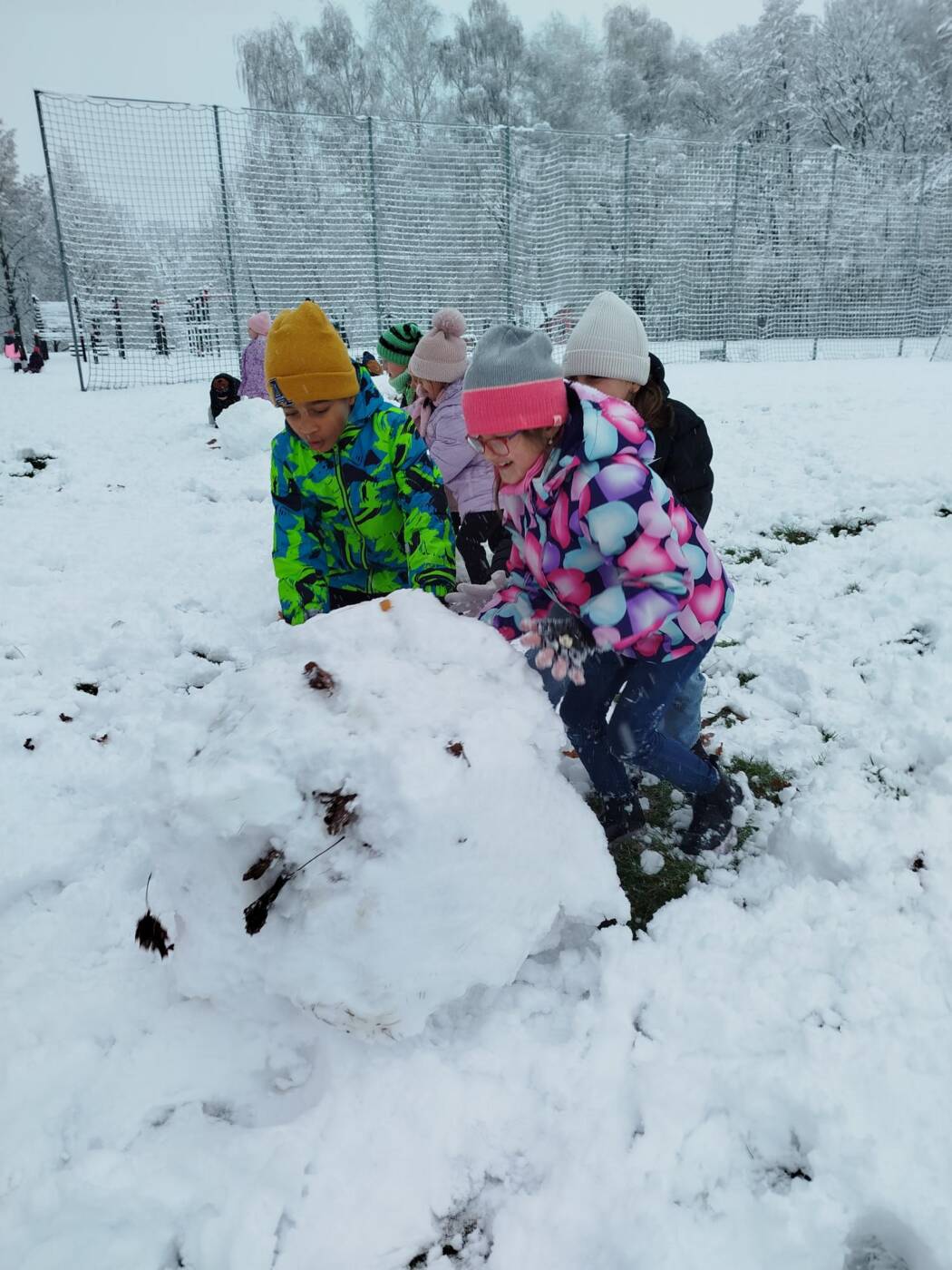 První sněhová nadílka proměnila naše školní hřiště v zimní království. Děti se s nadšením pouštěly do stavění sněhuláků a iglú a nechyběla ani pořádná koulovačka. Zimní zábava je úplně pohltila.