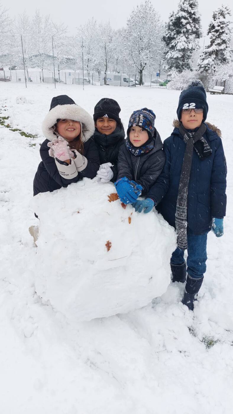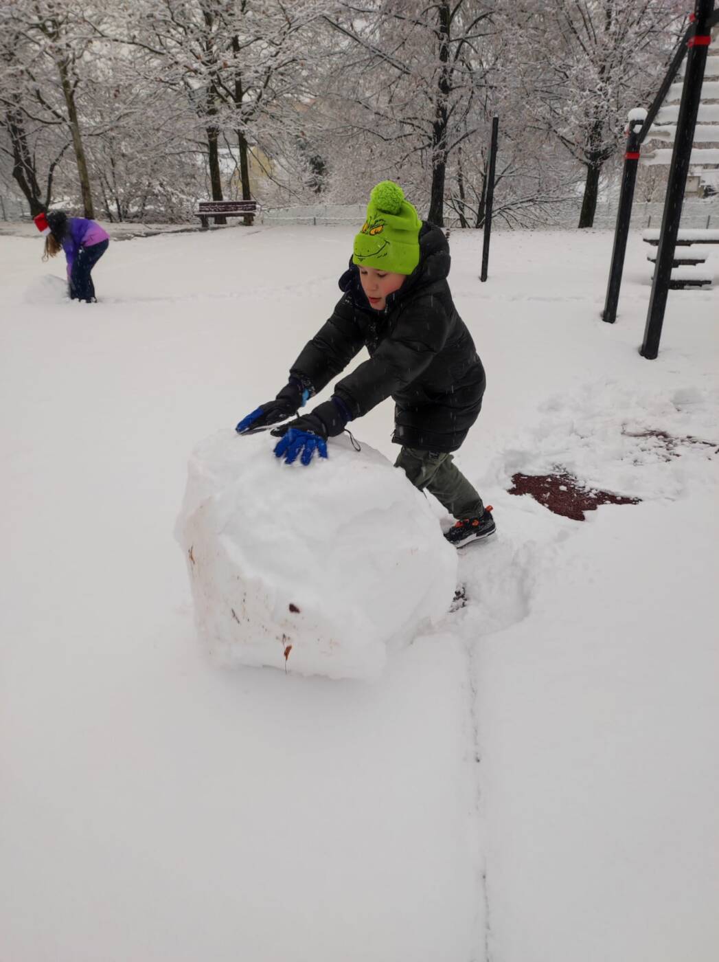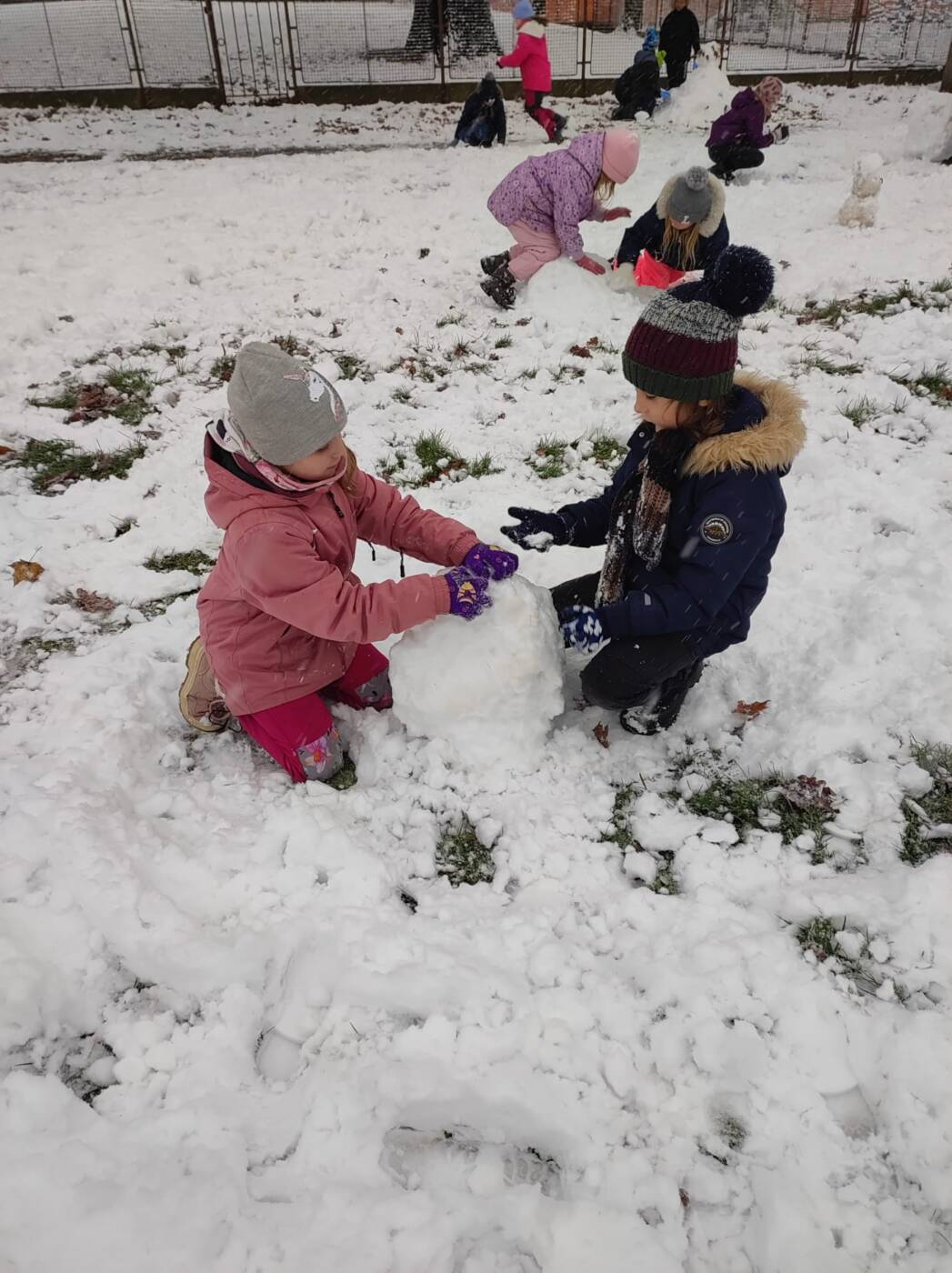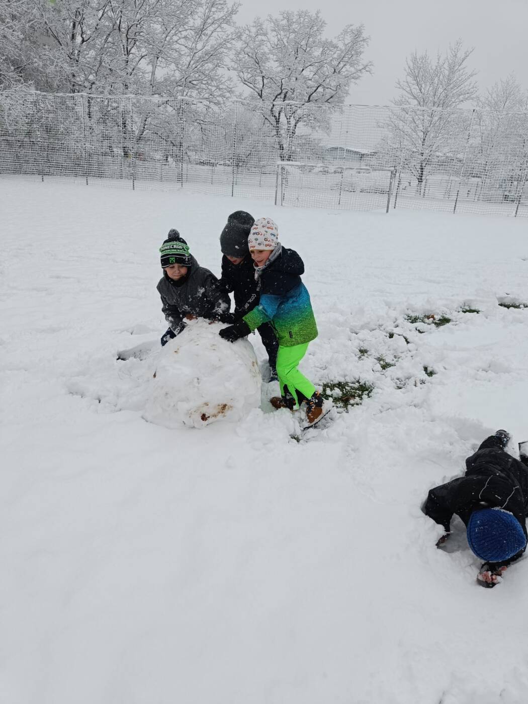 První sněhová nadílka proměnila naše školní hřiště v zimní království. Děti se s nadšením pouštěly do stavění sněhuláků a iglú a nechyběla ani pořádná koulovačka. Zimní zábava je úplně pohltila.